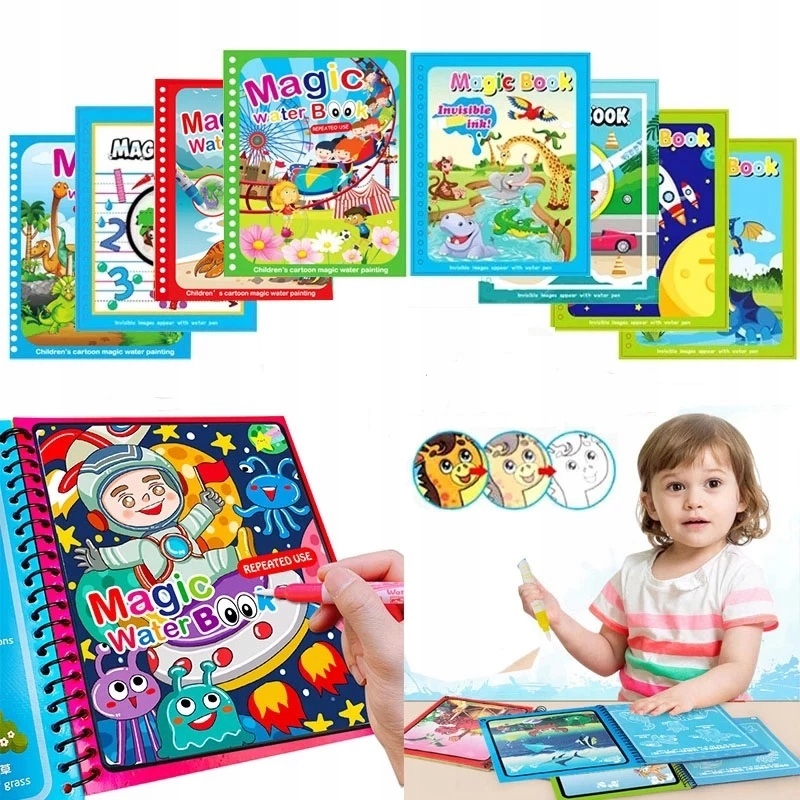 - A чарівна багаторазова водна розмальовка — чудова ідея для подарунок! Має цілих 4 картинки, що ідеально підійде всім любителям чарівного малювання.