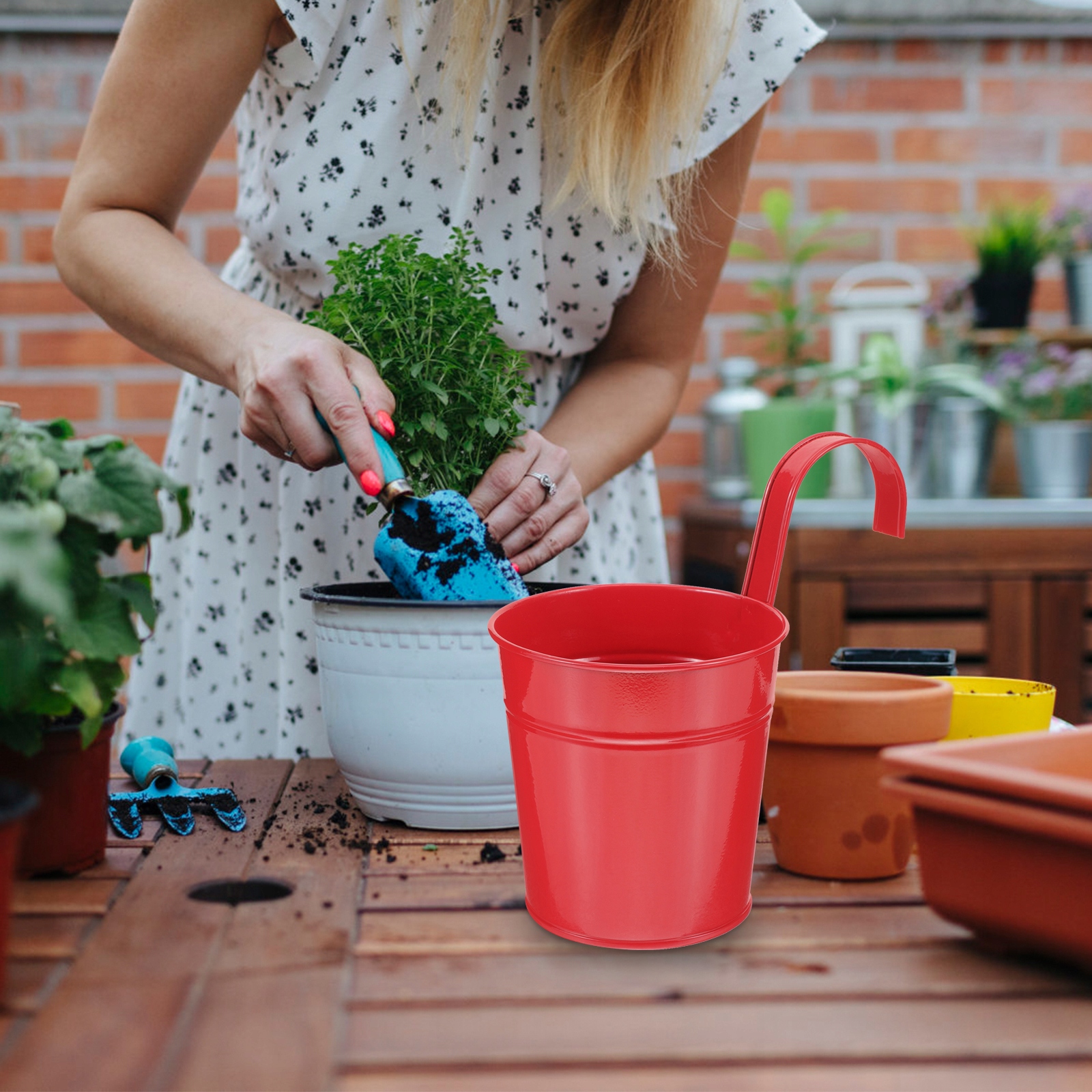 KOLOROWY DONICZKA METALOWA WISZĄCA Z UCHWYTEM NA ROŚLINY (CZERWONA)