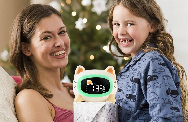 Kolorowy zegar budzik lampka lampa nocna LED RGB dla dzieci dziecka Kot
