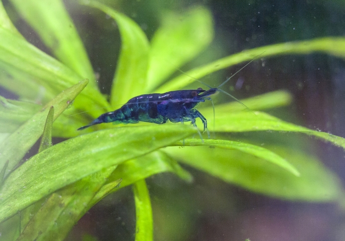 Один з найкрасивіших і найбільш затребуваних кольорових сортів Neocaridina. Відтінок коливається від синього до темно-синього, іноді з темнішими плямами.