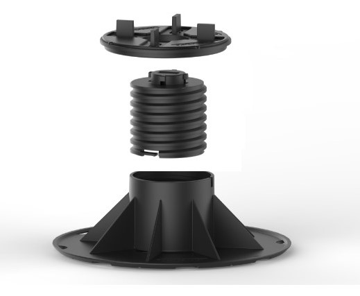 Регульовані гайковим ключем підкладки для терасових плит TVSB1+ є відмінним рішенням, забезпечують точне регулювання (спеціальним ключем) без необхідності демонтажу дощок, з ефективною шумоізоляцією і є найкращим і найпростішим способом монтажу вентильовані тераси.