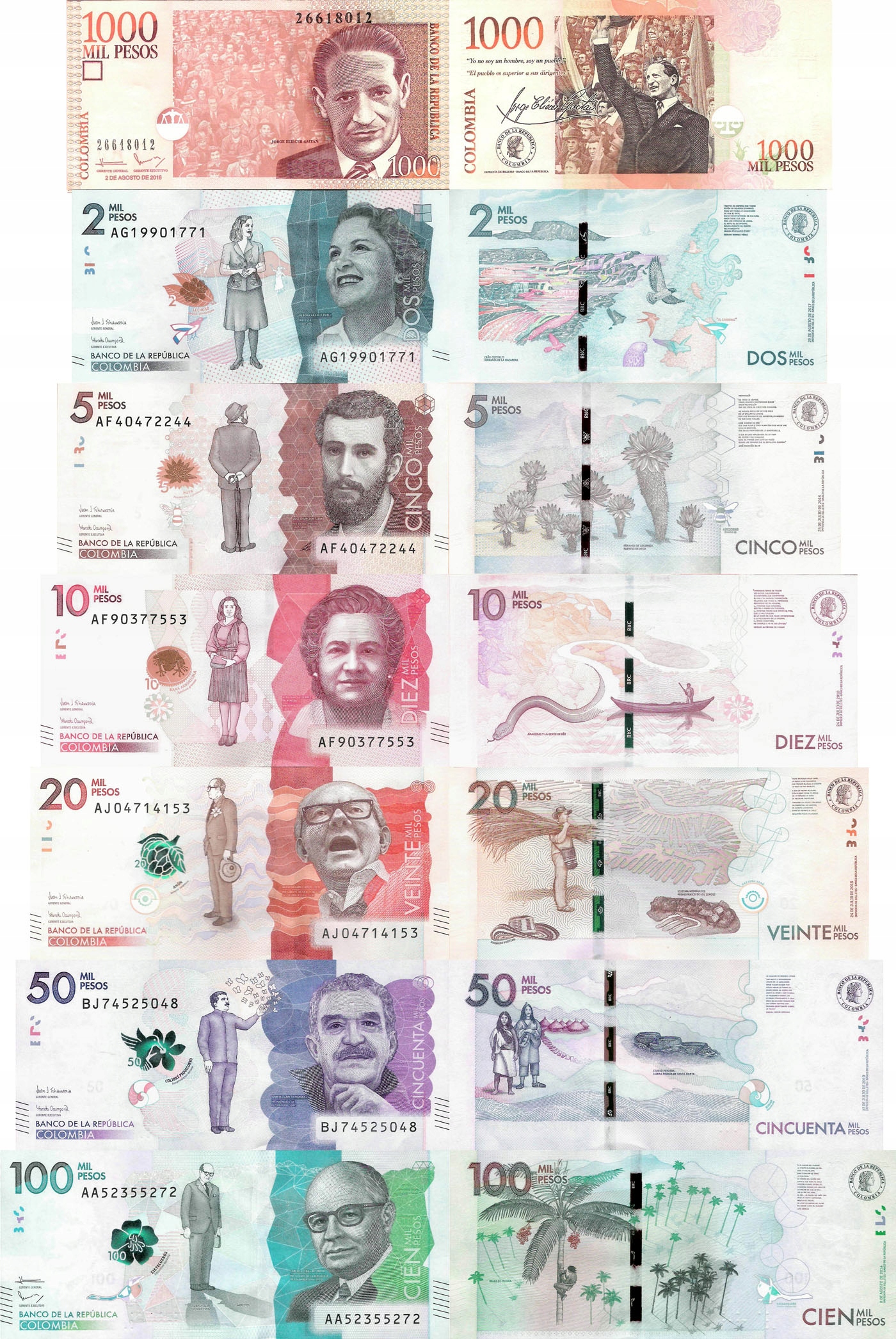 Kolumbia zestaw 1000+2000+5000+10000+ 20000+50000+100000 pesos P456-463 UNC