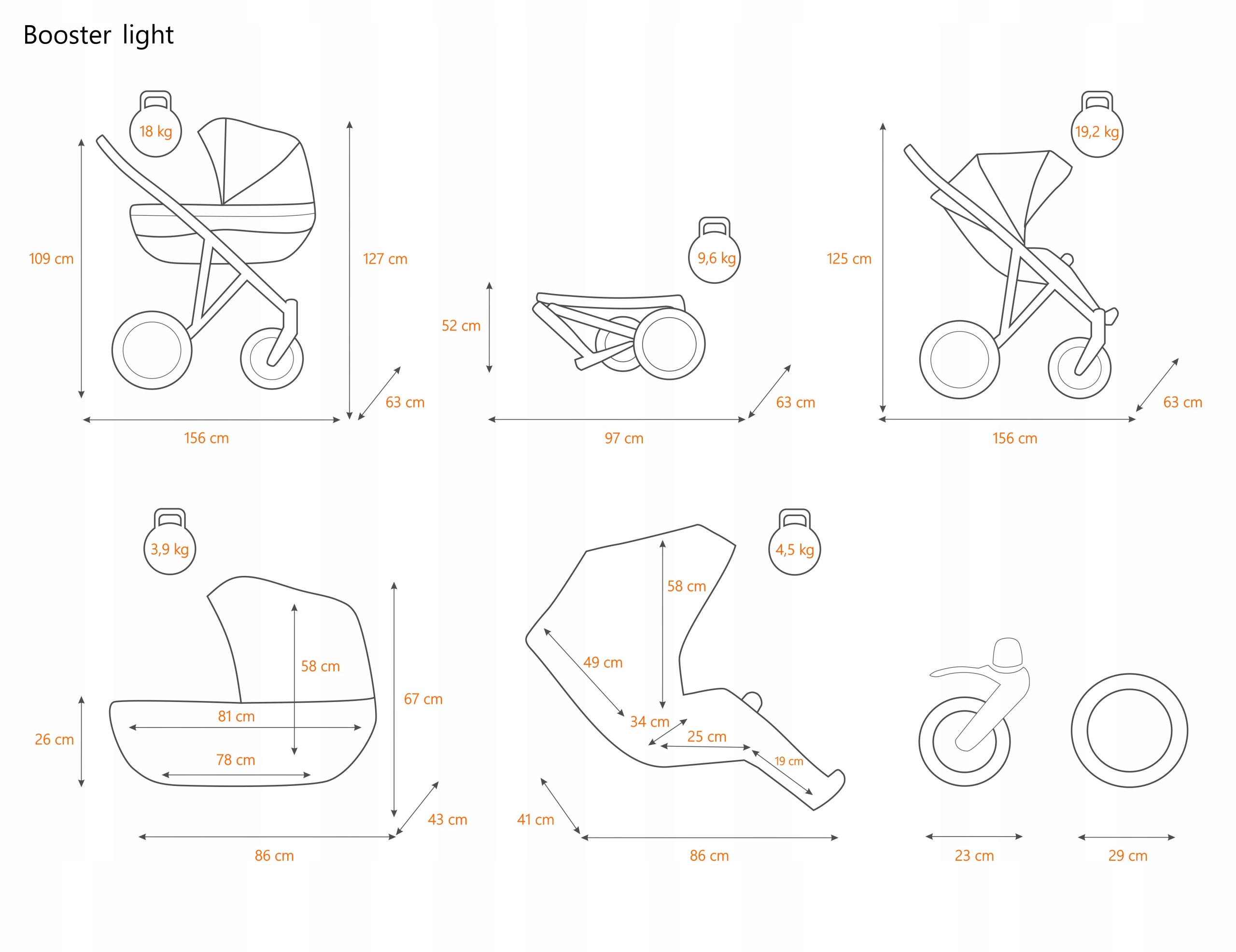 Коли ви купуєте коляску Booster Light, ви отримуєте від нас, окрім обладнання, перерахованого вище, БЕЗКОШТОВНО: