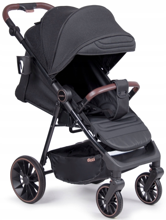 Великою перевагою коляски є те, що у новітньої коляски Dizzi є дуже великі всі 4 безкамерні колеса з гелевими протекторами, які дуже добре їздять по нерівній поверхні, і вам не доведеться турбуватися про те, що з них виходить повітря. Усі 4 колеса мають вбудовані амортизатори, які також допоможуть вам їздити по складнішій місцевості, ця комбінація гарантує, що ваш малюк всередині не відчує навіть найменших вібрацій. Передні колеса надзвичайно поворотні, але їх також можна заблокувати для руху прямо, тому кожен знайде ідеальне рішення для себе. Під сидінням розташований великий кошик, в який помістяться дрібні аксесуари для малюка, а також дрібні покупки.