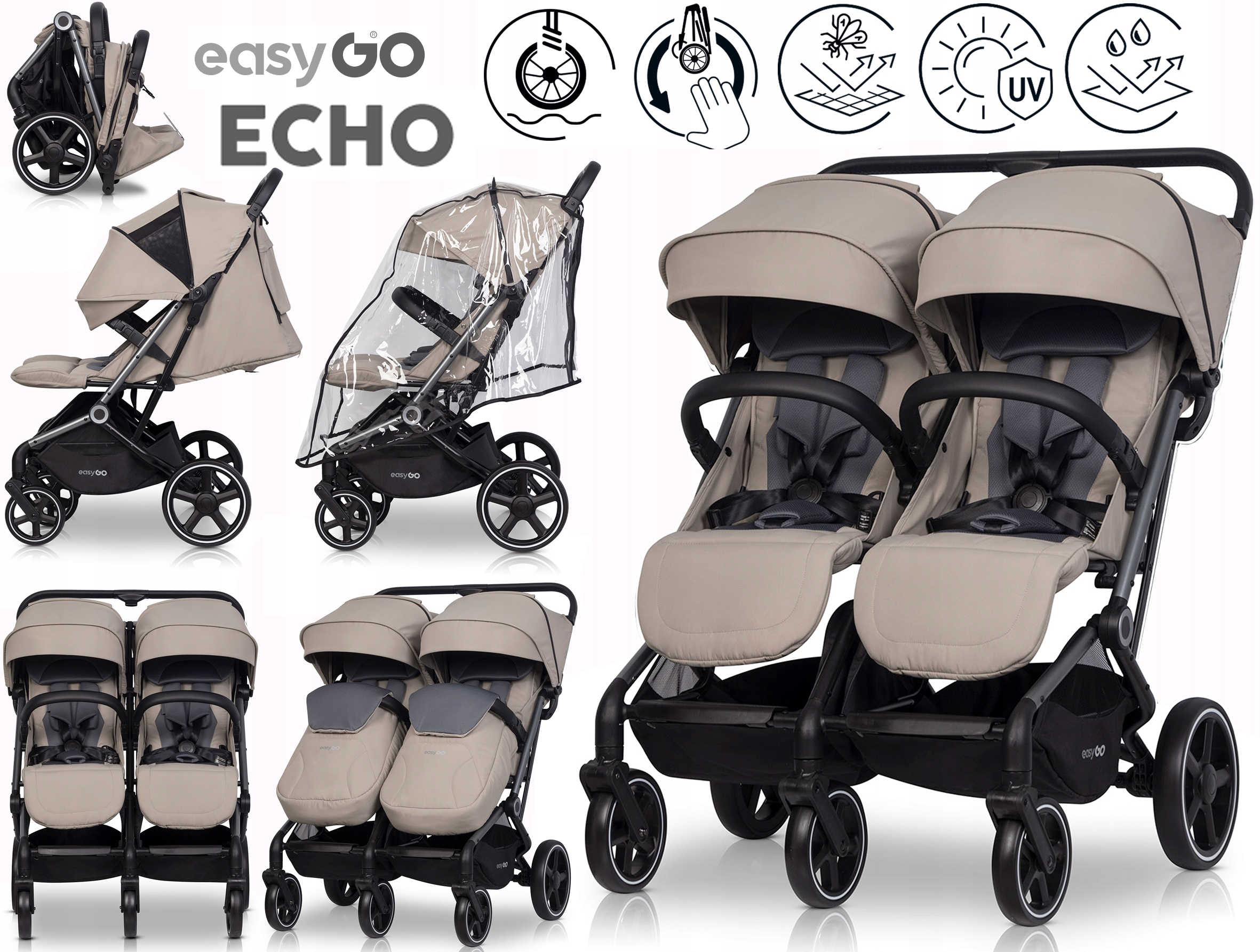 КОЛЯСКА ДЛЯ ДВІЙНЯТ І ДІТЕЙ РІК ЗА РОКОМ ECHO ЧОХЛИ АКСЕСУАРИ