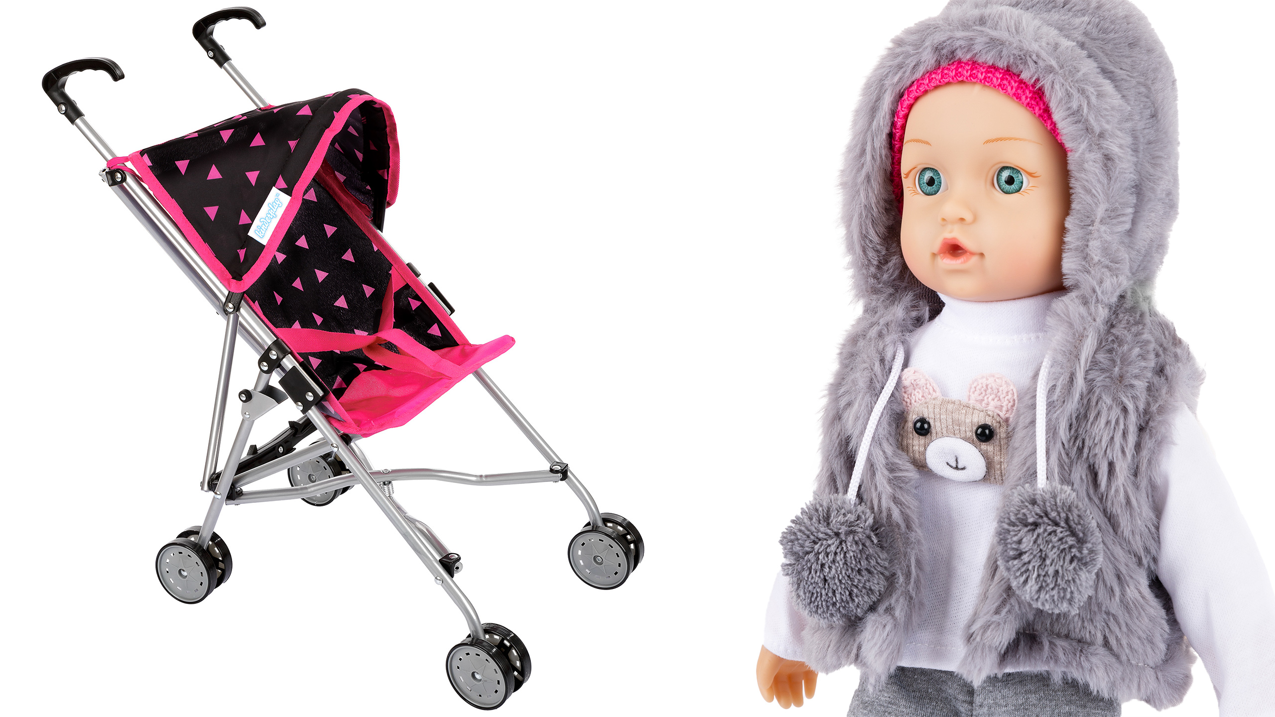 Дозволяє чудово розважатися. Навіть найменші діти без проблем штовхають порожню або наповнену іграшками коляску. Коляска має замок від автоматичного складання.