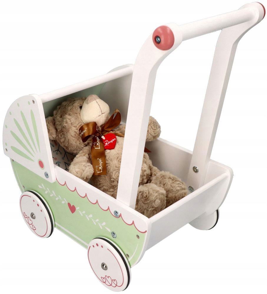 Лялькам і плюшевим ведмедикам більше не потрібно подорожувати в сумці. Їм також не потрібно сидіти вдома. Наша красива, глибока, дерев'яна коляска - ідеальне місце для вас і вашого маленького власника, щоб відправитися в подорож. Коляска для ляльок - одна з основних іграшок для маленьких дівчаток. Він зможе супроводжувати вас під час прогулянок і шопінгу, а також чудово підійде для гри вдома. Для дітей, які тренуються навички ходьби, це також буде підтримкою у тренуванні цієї складної навички.