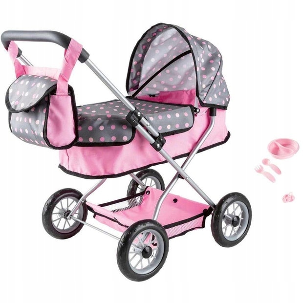 Коляска для ляльок Bayer »Smarty« - це красива коляска для ляльок у сучасному, свіжому кольорі, яка пропонує місце для ляльок до 46 см. Усе необхідне для подорожі з лялькою чи плюшевою іграшкою можна взяти у вбудований кошик для покупок. Завдяки чохлу для ванни малюки також ідеально захищені від сонця та вітру. Висота блискавки приблизно 56 см. Він поставляється в красивій подарунковій упаковці, що містить сумку для ляльок, соску та столові прибори з тарілкою, виделкою та ложкою.