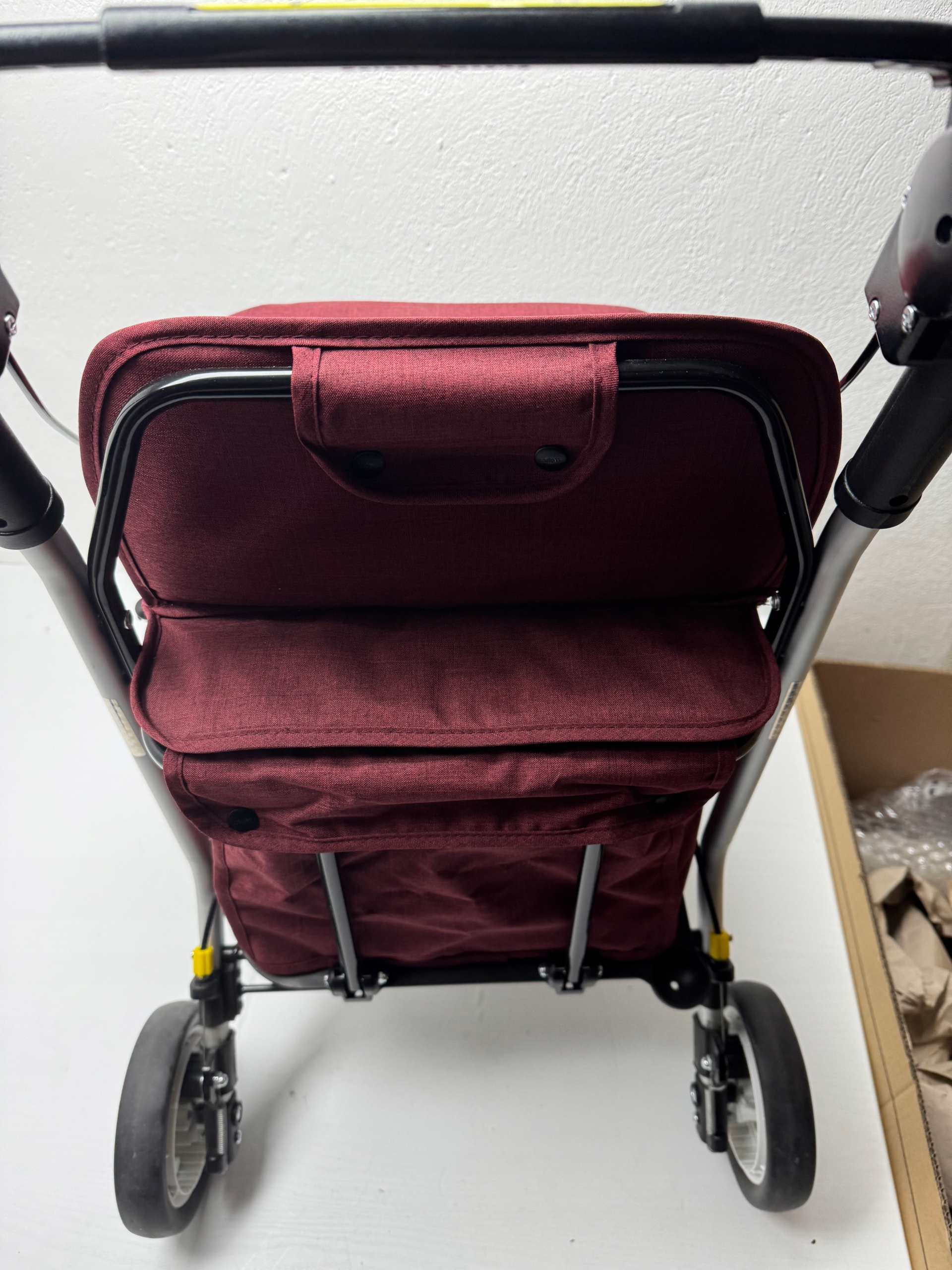 - Senior Comfort — це 4-х колісний візок для покупок із сидінням, ідеальний для пенсіонерів, які хочуть бути комфортні та спокійні покупки