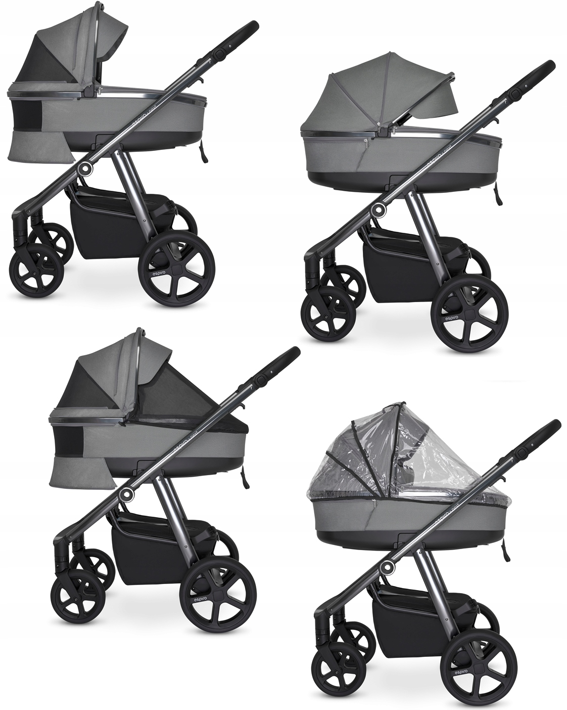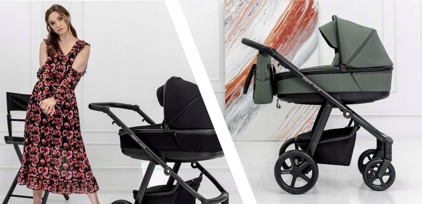 Модель Next Up — новий продукт від бренду Espiro. Високоякісний матовий чорний каркас із сріблястим покриттям надає колясці не тільки елегантний вигляд, але й забезпечує повну функціональність коляски