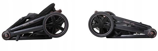 Легка і невелика конструкція в складеному вигляді, доступна на накачаних або гелевих колесах.