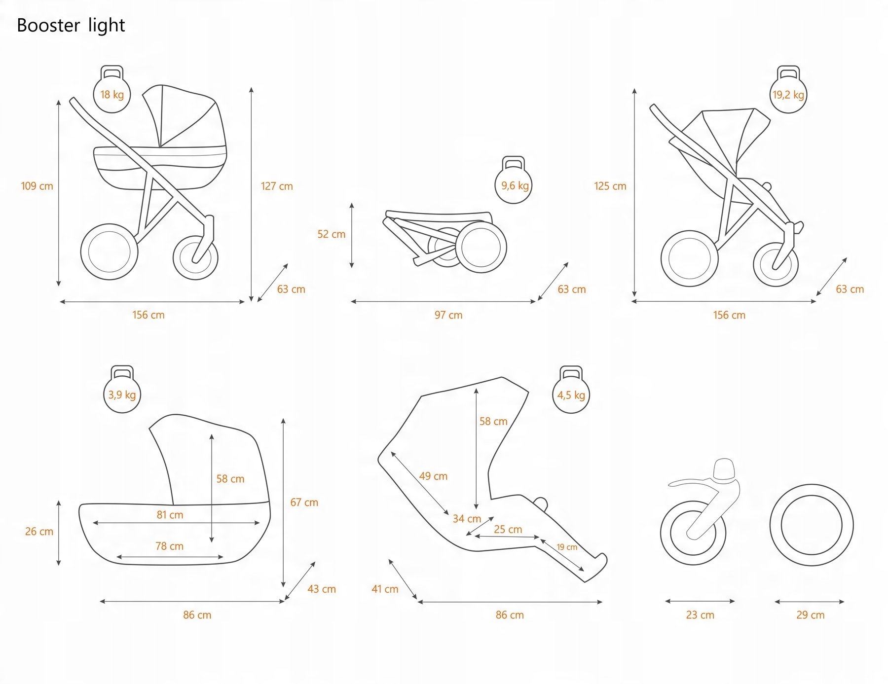 Нашим пріоритетом при створенні конструкції цієї коляски було забезпечення комфорту використання та надійної функціональності. Booster Light буде надійним супутником з перших моментів життя вашої дитини і до 36 місяців (максимальна вага 15 кг). Коли ви обираєте коляску Booster, ви обираєте продукт, створений з особливою увагою до якості та безпеки.