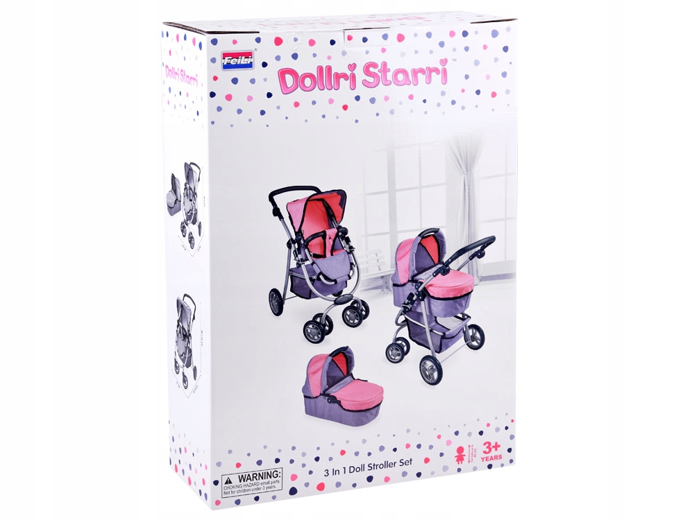 Багатофункціональна коляска для ляльок. Коляска має три варіанти трансформації, тому її можна адаптувати під будь-які потреби ведмедика або ляльки. У коляску-піввагонду можна розмістити ляльку або ведмедика максимальною висотою 45 см. Коляска має дуже привабливий зовнішній вигляд і легко трансформується в коляску, гондолу або люльку. Регульована ручка коляски забезпечує ідеальне пристосування до росту дитини.