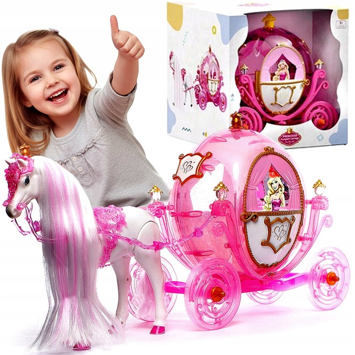 КОЛЯСКА ПРИНЦЕСИ З КОНЕМ КОНЕЧКОМ ВЕЛИКА КОЛЯСКА ДЛЯ ЛЯЛЬОК СВІТЛІ ЗВУЧАЄ