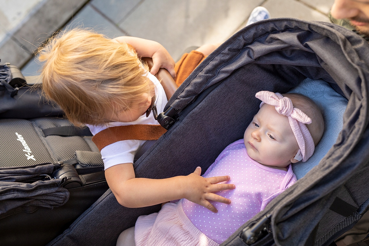 Коляска для двох дітей різного віку не повинна бути компромісом з точки зору потреб і комфорту подорожі дитини. Великі розсувні навіси захищають їх від сонця та вітру, а вентиляція забезпечує циркуляцію повітря під час прогулянок у спекотні дні. І це лише початок довгого списку функціональних рішень, які ми тут представили.