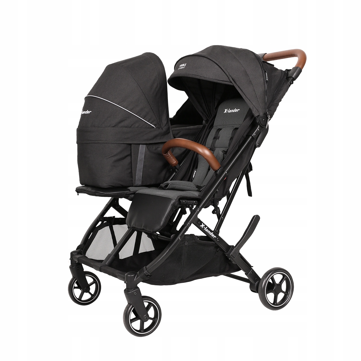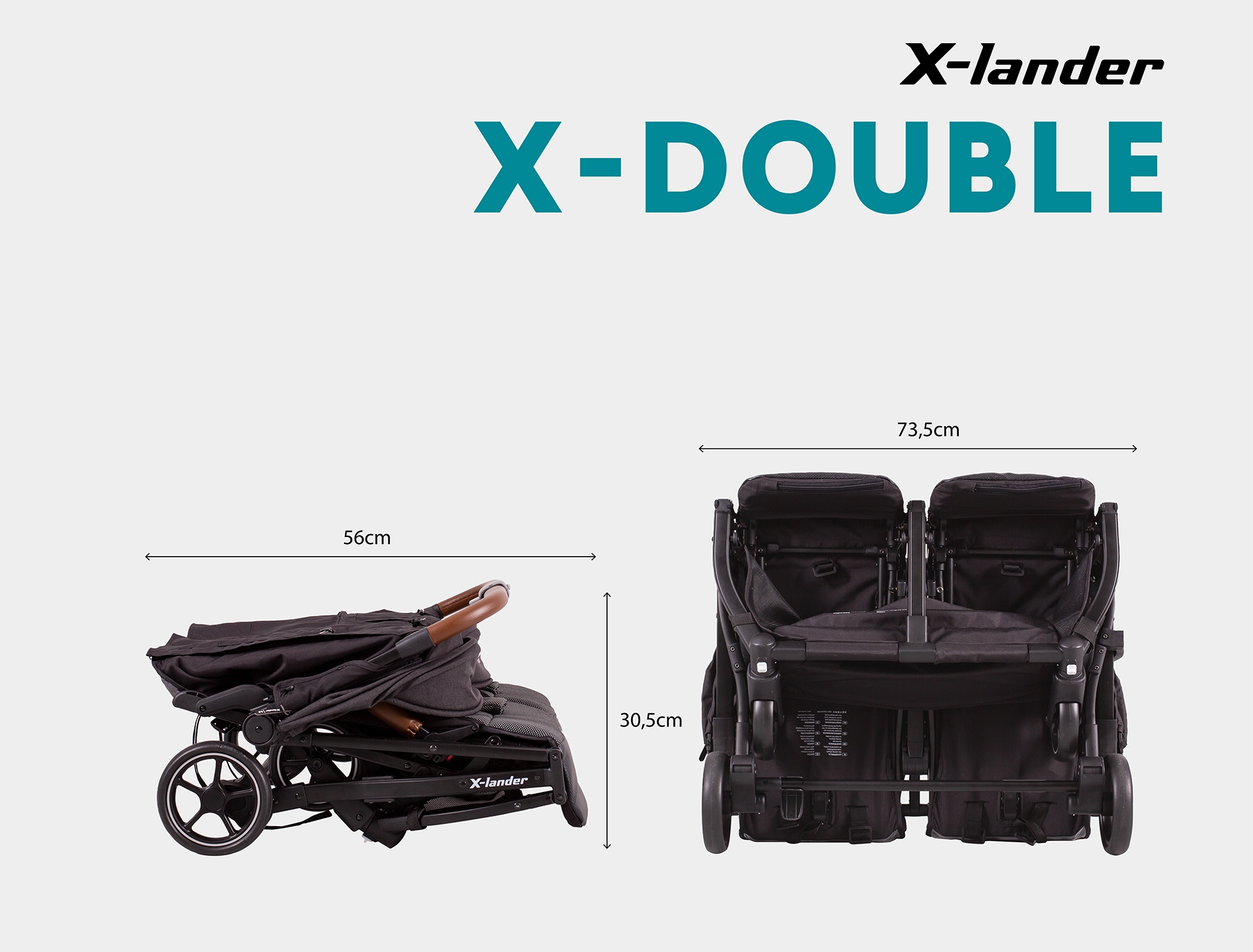 X-Double - це найменша з двомісних колясок. Ми хотіли, щоб він був напрочуд легким і таким чином полегшив ваше повсякденне життя з двома малюками. Ця модель легко складається в невеликий пакет, який легко поміститься в багажник вашого автомобіля. Коляска також має автоматичний замок, який фіксує раму після складання. Це робить його зручним для підйому та перенесення. Не навантажує спину! М’яка люлька, яку можна придбати, також легко складається та не займає багато місця під час транспортування.