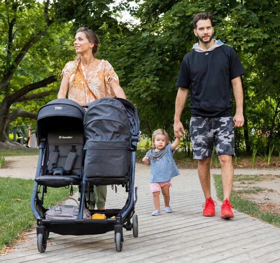 Коляска для двох дітей може бути тягарем для батьків. Тому ми подбали про те, щоб X-Double легко їздити і легко складатися.Вона важить 11,9 кг - це найлегша модель двомісної коляски на ринку. Вона також має автоматичний замок, який кріпить раму, що полегшує підйом і перенесення після складання.