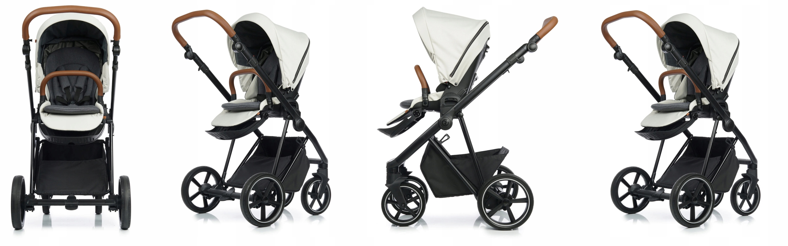 Легка алюмінієва рама, комфортна підвіска. Амортизатор з двоступеневим регулюванням жорсткості і широким діапазоном регулювання роблять коляску добре адаптованою до бездоріжжя і гладких поверхонь. Передні поворотні колеса з можливістю блокування, система Anti Shock, система стабілізації поворотних коліс. Безкамерні колеса, що не потребують обслуговування, забезпечують плавне водіння. Центральне гальмо. Швидка і проста система для складання рами до невеликого розміру. Можливість зняття коліс і осі, що зменшує ширину рами в складеному стані. Корзина для покупок з можливістю збільшення, з швидким і легким доступом до внутрішньої частини завдяки магнітним фіксаторам. Регульована ручка обшита екошкірою. Легка та зручна система «Click» для складання гондоли, коляски та автокрісла. Гондола ергономічної форми, складена плоско, що значно полегшує транспортування та зберігання. Інноваційна система швидкого складання гондоли. Чохол для ніжок з віконцем і магнітами для зручного використання. Внутрішня частина натуральна, бавовна. Вентиляція гондоли. Вікно з москітною сіткою і в капюшоні, і в гондолі - відкритий літній варіант. Ручка для перенесення гондоли. Сонцезахисний козирок UV 50. Коляска легка, компактна, складається з рамою. Можливість кріплення коляски вперед або назад. Матрац з екологічної бамбукової тканини з антибактеріальними та тепловими властивостями, охолоджує влітку та зігріває взимку. Розсувний капюшон з вентиляційним вікном, п'ятиточкові ремені безпеки з регулюванням висоти, регульована спинка для положення лежачи, регульована підніжка. Знімний бар'єр, оброблений екошкірою. Чохол для ніжок. Ми використовуємо високоякісні, сертифіковані тканини.