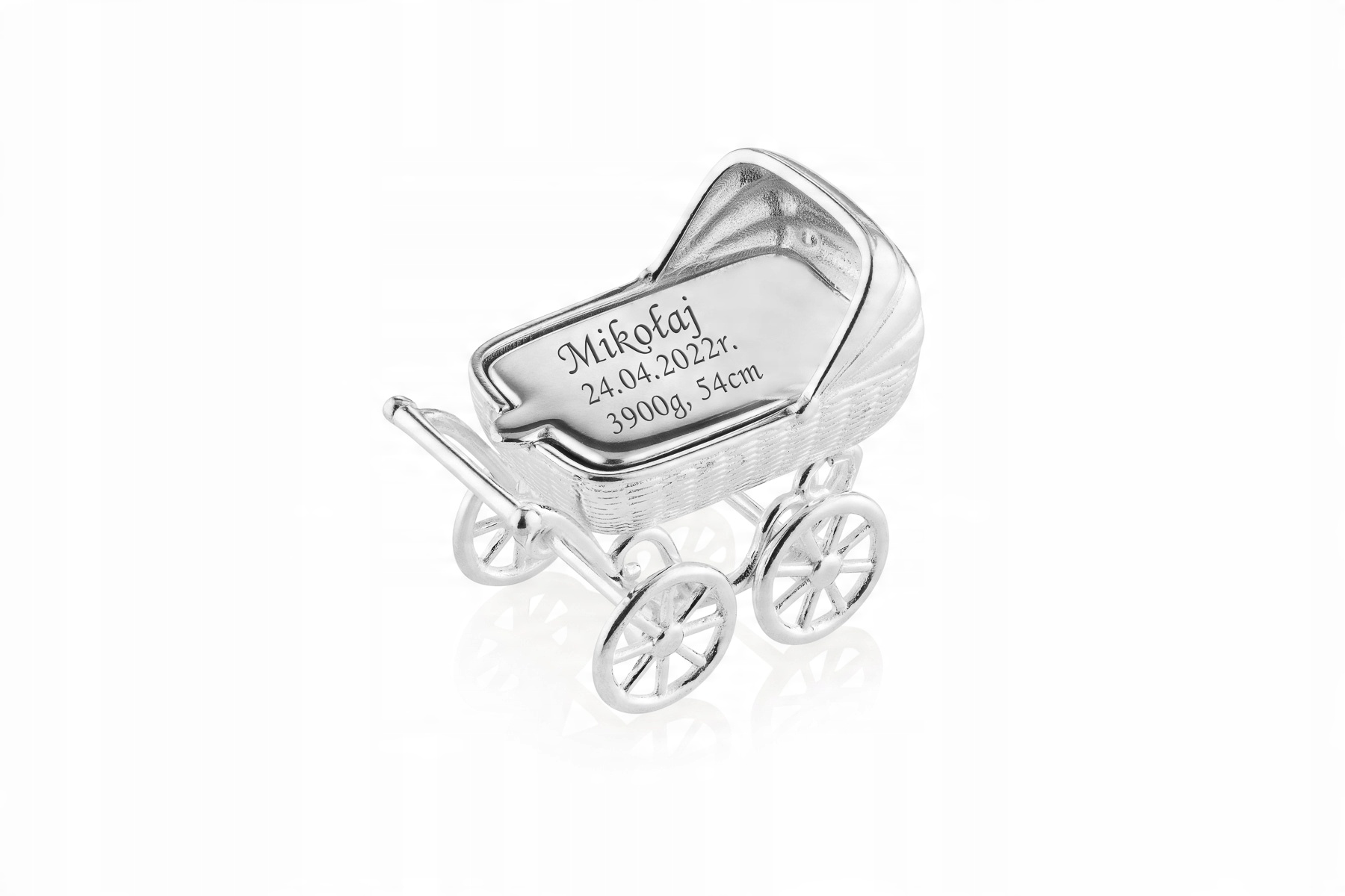 Коляска сувенір срібло 925 для хрещення з гравіруванням подарунка на рік хрещення