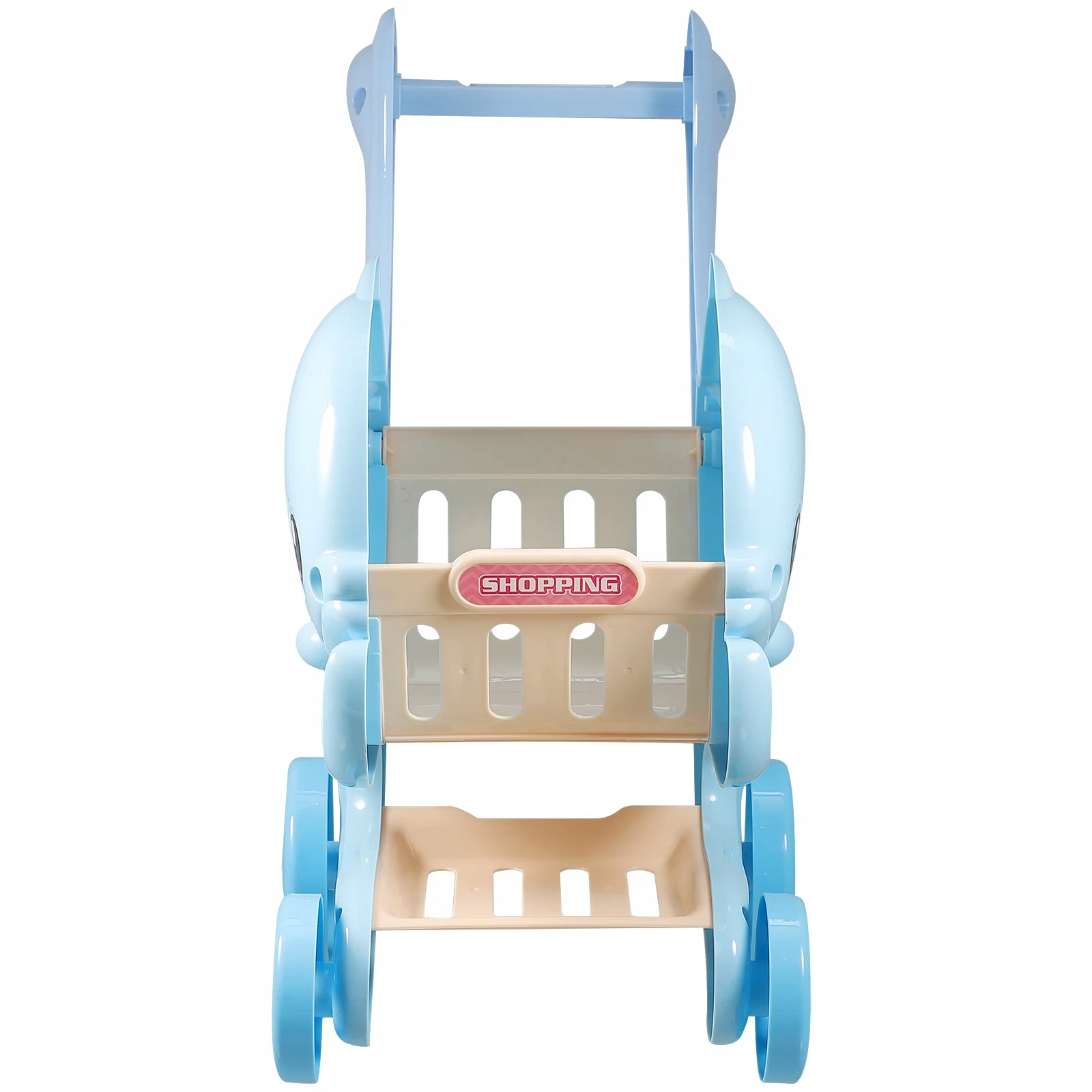 Це весела іграшка-кошик для покупок, виготовлена з високоякісних і міцних матеріалів, безпечна та має довший термін служби. Ця цікава іграшка може краще сприяти пізнаванню, потенційній творчості, уяві та соціалізації дитини. Компактний розмір і невелика вага, легко грати і зручно брати, також може бути унікальним подарунком. Мультяшна зовнішність може привернути увагу дітей, дітям сподобається цей милий візок для покупок.