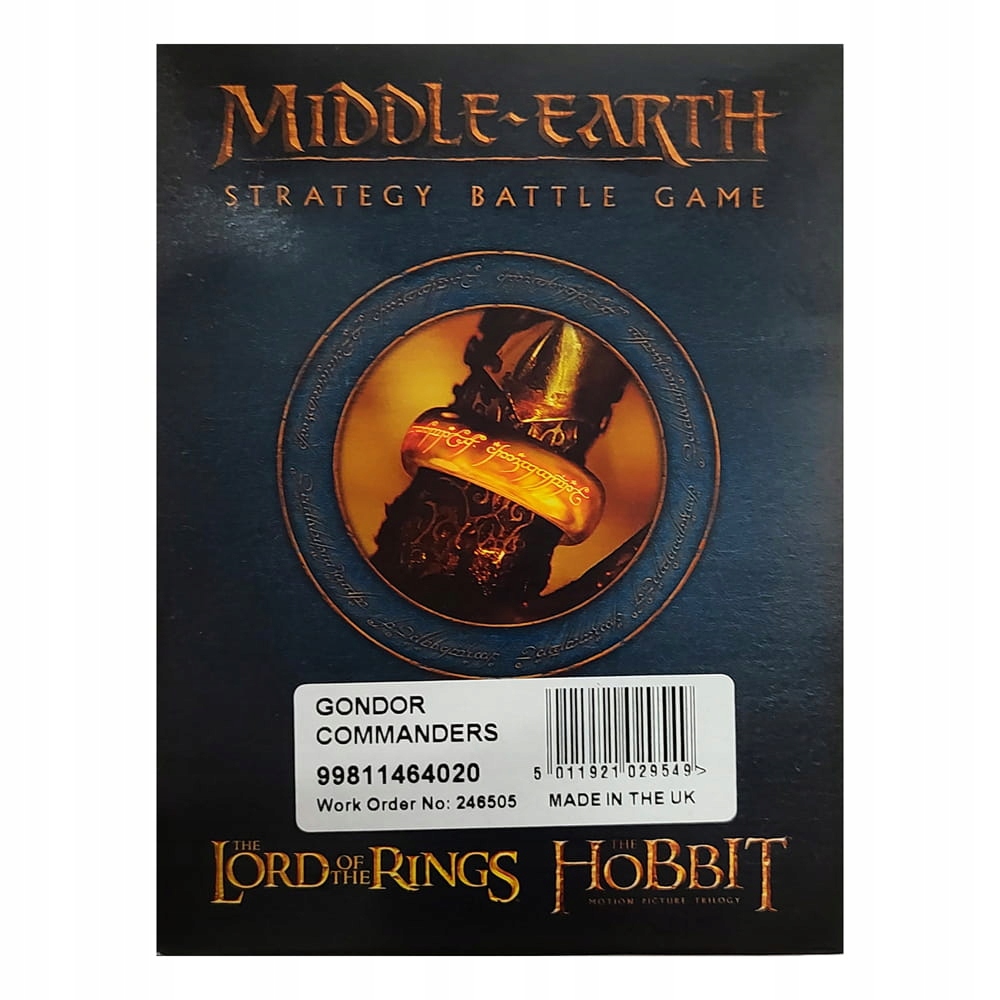 Цей набір включає набір командирів Gondor. Ці моделі відкидаються з смоли і містять капітана Мінас Тіріт, воїн з куточком війни, флагманом та лицарем Білої вежі. Вони доставляються як 7 окремих елементів і доставляються з 4 круглими стендами 25 мм.