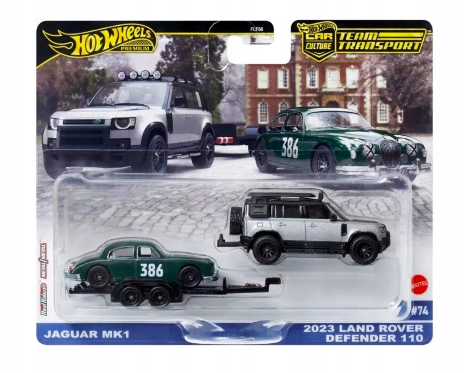 Hot Wheels Premium – Jaguar MK1 & Land Rover Defender 110 (Team Transport 2-Pack)