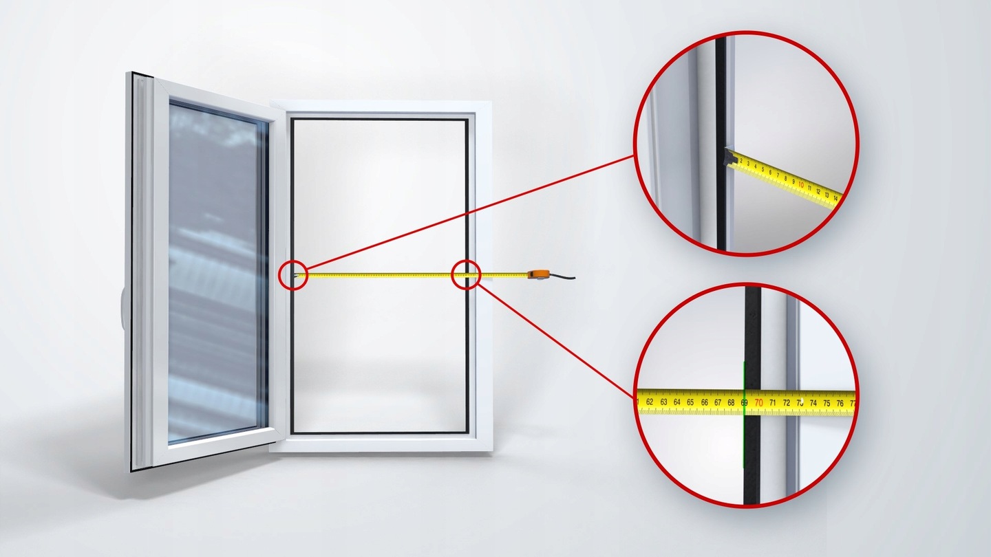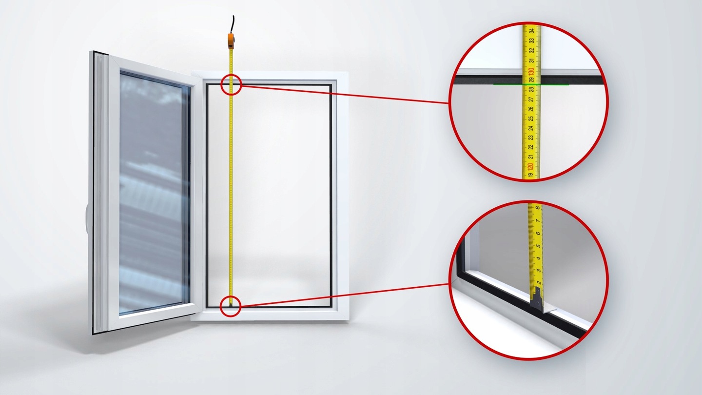 Ми отримуємо ширину та висоту сітки комарів, вимірюючи вікна після відкриття крила, від пластику до пластику, на місці, де гумова прокладка підключається до рами (ми нічого не віднімаємо).