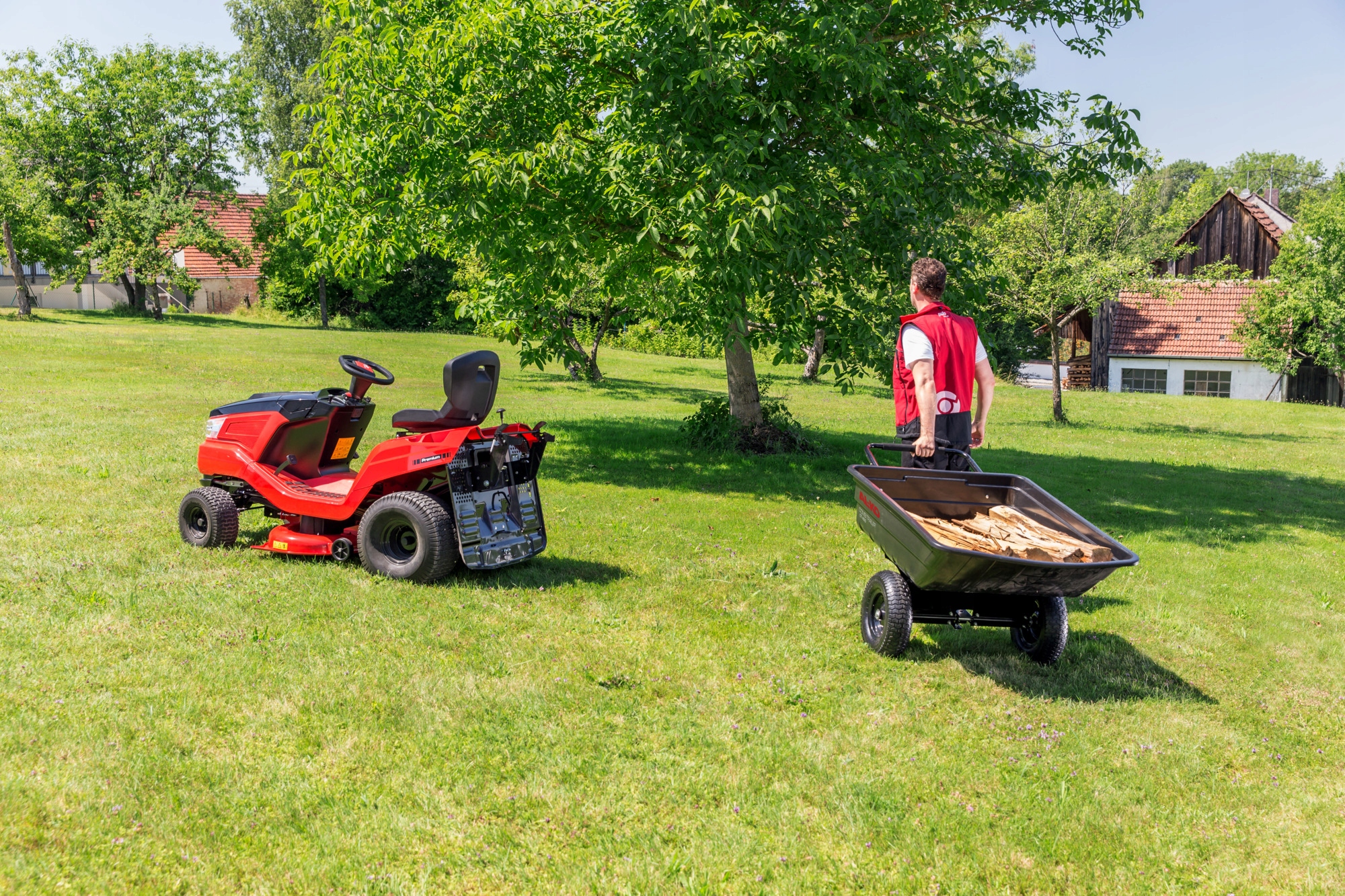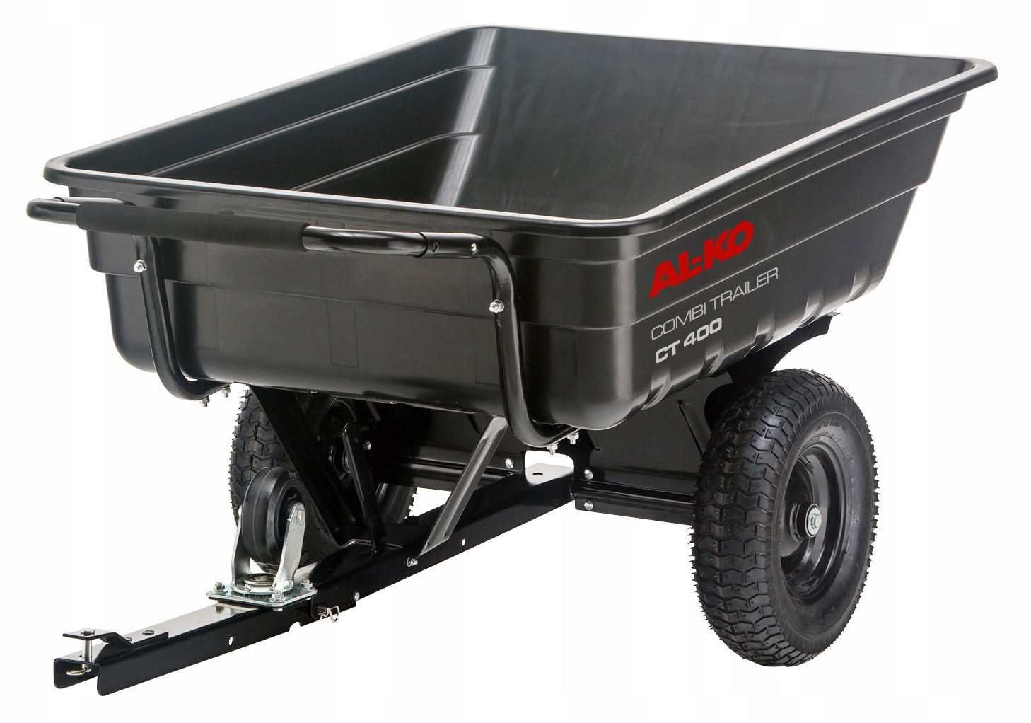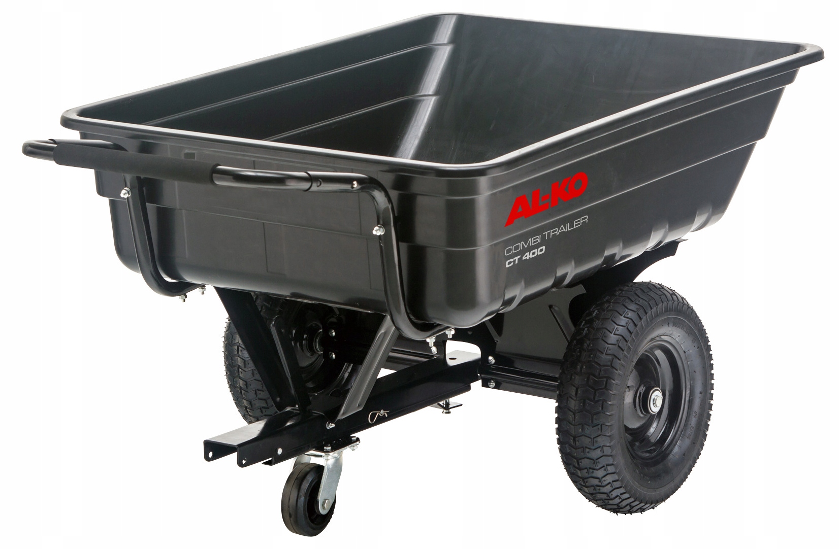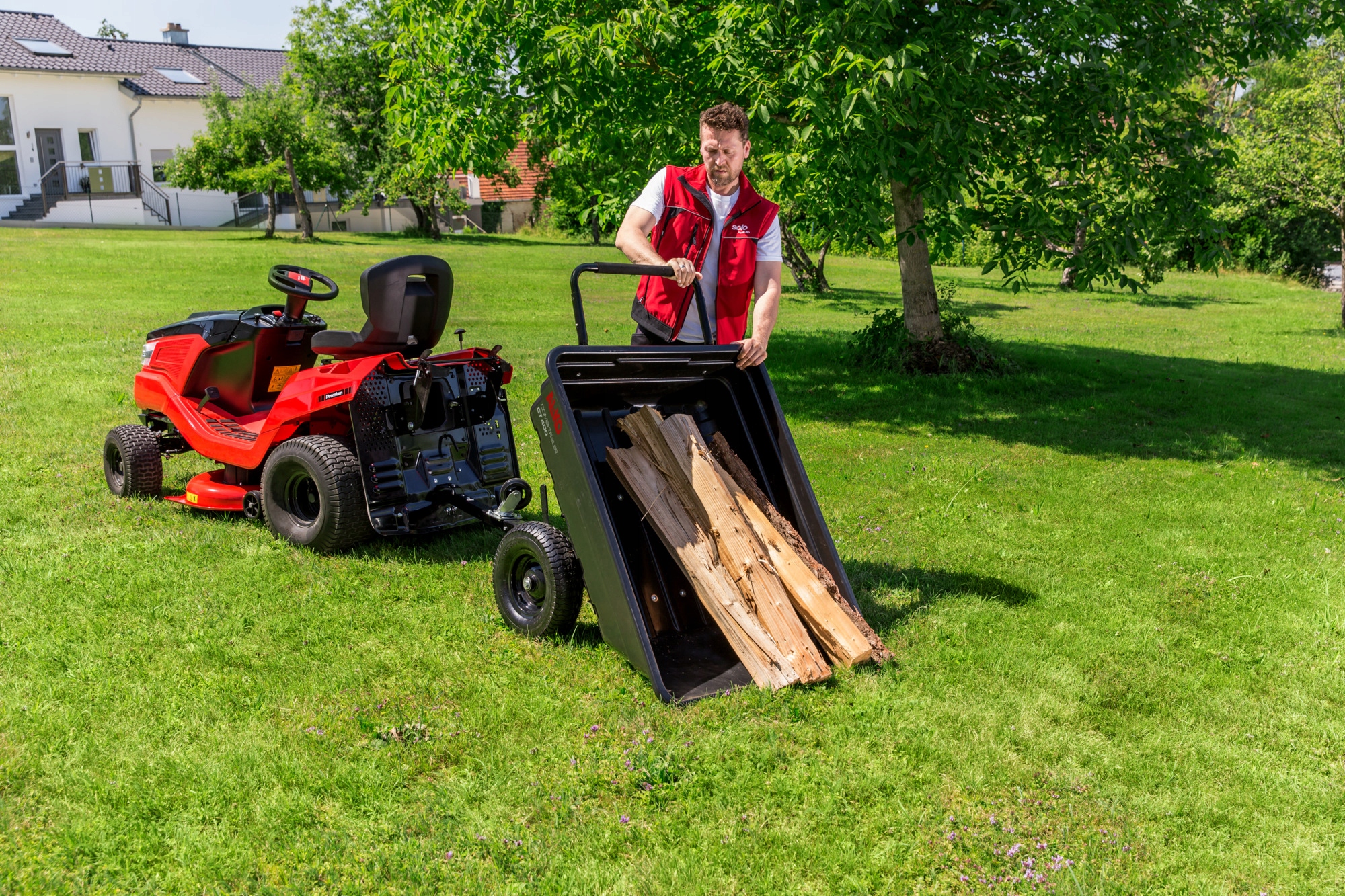 Дуже міцний і довговічний причіп. Має шини з протекторами, які полегшують пересування. Додатковою перевагою причепа є функція перекидання. Виготовлений зі сталі та поліпропілену.