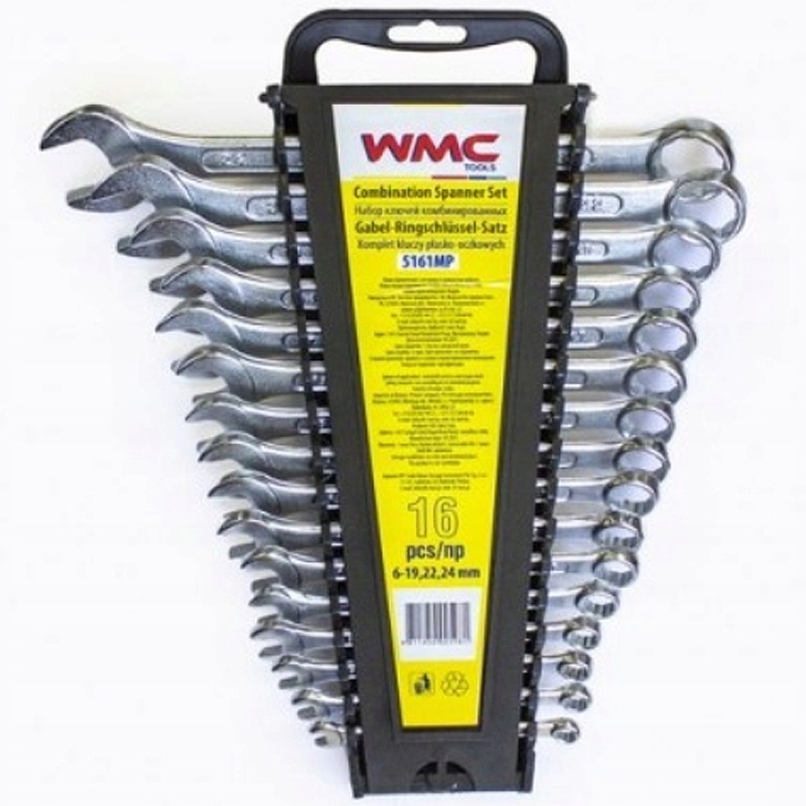 Комбіновані гайкові ключі WMC виготовлені з полірованої хромованадієвої сталіі використовуються для відкручування та затягування гвинтів і гайок. Ключ має ріжковий ключ з одного боку та накидний ключ з іншого. Завдяки цьому ми можемо обмежити кількість інструментів до мінімуму.