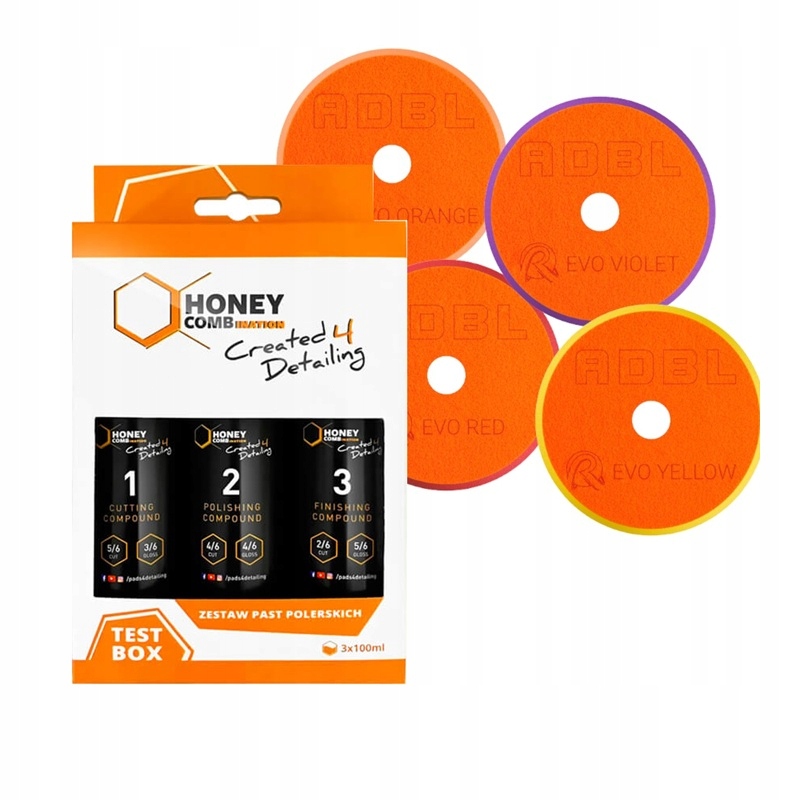 тест -коробка - це набір, що складається з трьох полірувальних паст у потужності 100 мл. Комплект включає сильно ріжучу, середню різання (лак) та оздоблювальну пасту. Таким чином, цей набір дає можливість пройти кожен етап шліфування та перевірити, як займаються поєднання медових комбінованих і який ефект ви можете отримати з ними. Якщо цей набір відповідає вашим очікуванням, ніщо не заважає купувати пасти на більшу потужність!