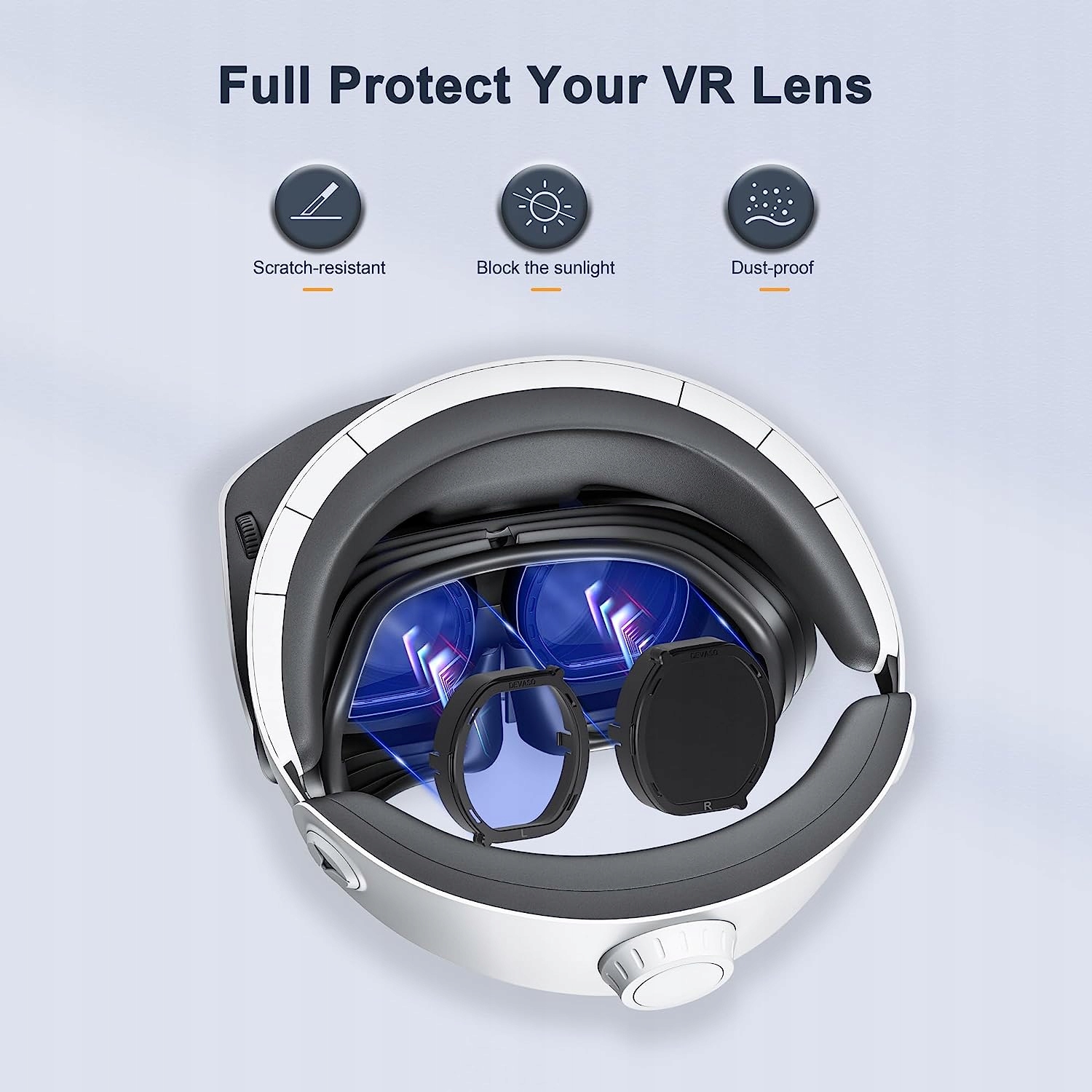 Індивідуальний дизайн для користувачів окулярів PSVR2. DEVASO Glasses Spacer Protector — це спеціальний дизайн для PSVR2, ретельно підігнана порожнина 1:1 для аксесуарів VR. Перехідник для лінз PSVR 2 ідеально захищає окуляри та лінзи гарнітури VR від подряпин. Захисна кришка об’єктива також захищає об’єктив від подряпин і плям під час зберігання.