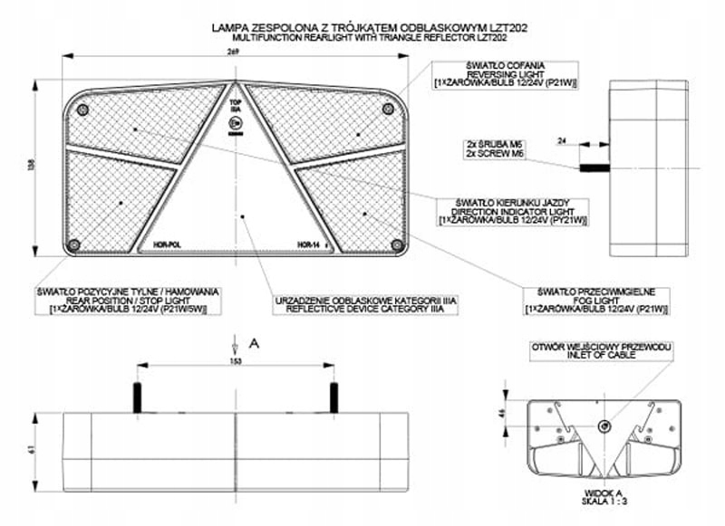 Лампа комбінована зі світловідбиваючим трикутником, ліва