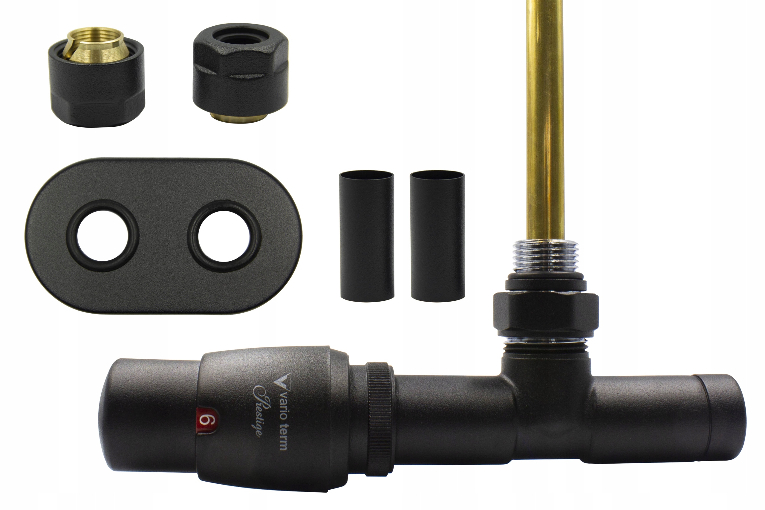Комбінований термостатичний вентиль Unico з роз'ємами длямідної установки 15 мм (за запитом заміна роз'єму для установки 16 мм PEX, запит інформації в примітках до продавець) + маскувальна розетка + рукава структурний чорний колір, ЛІВА орієнтація. (ПРАВА орієнтація за запитом)