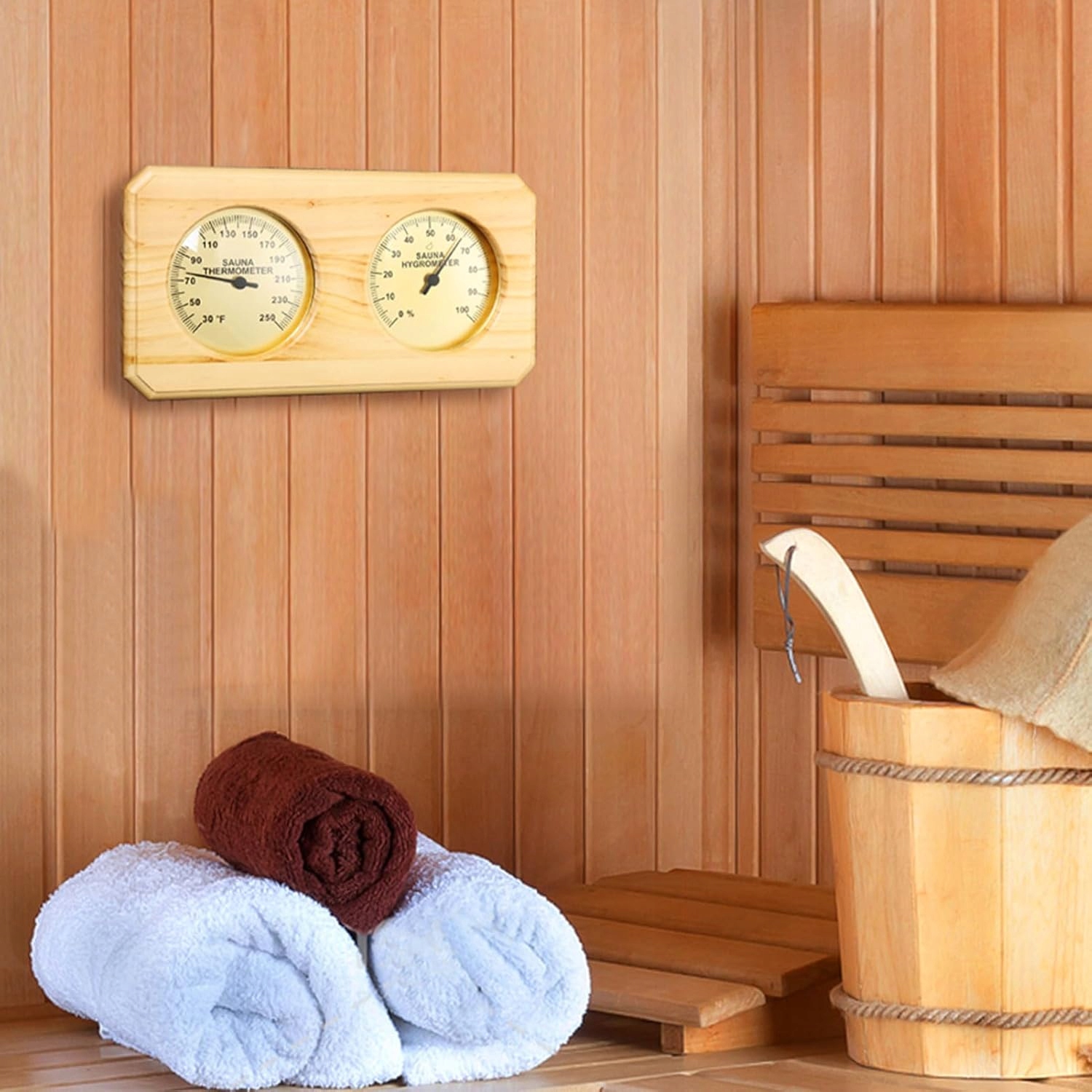 💧Термометр і гігрометр для сауни 2 в 1 працює в діапазоні температур від 0 до 120°C, що дозволяє точно вимірювати температуру в саунах відповідно до вимог користувача.