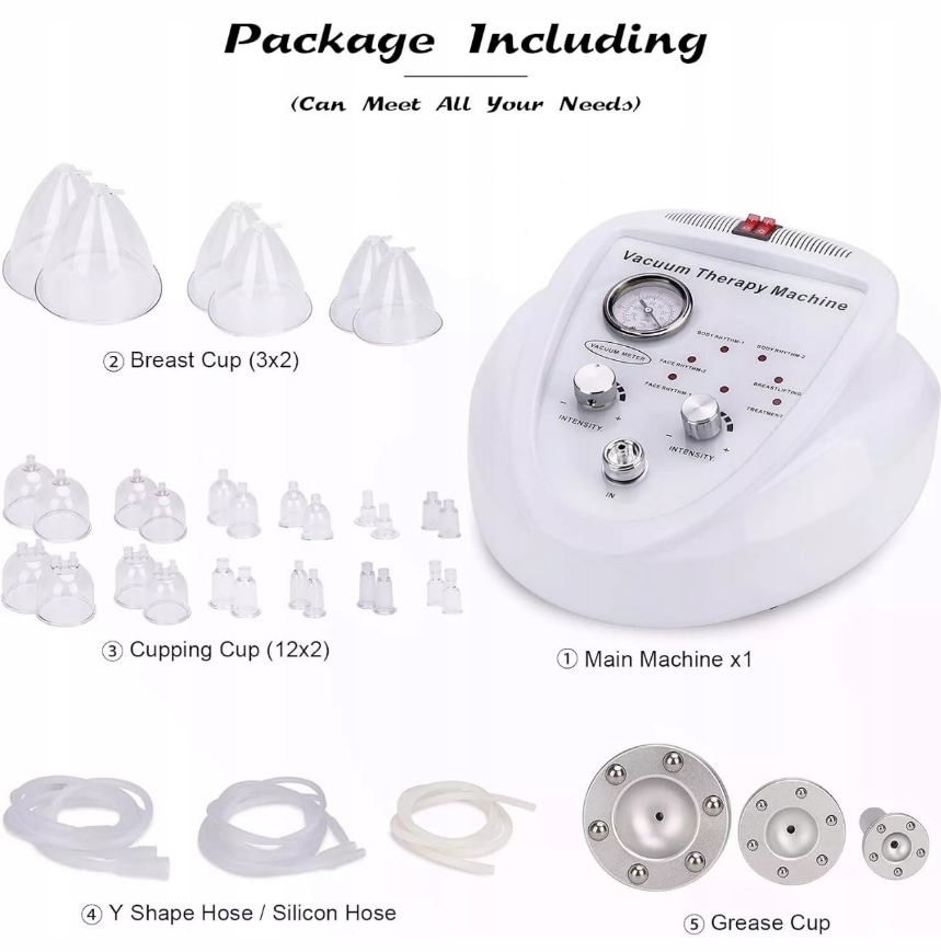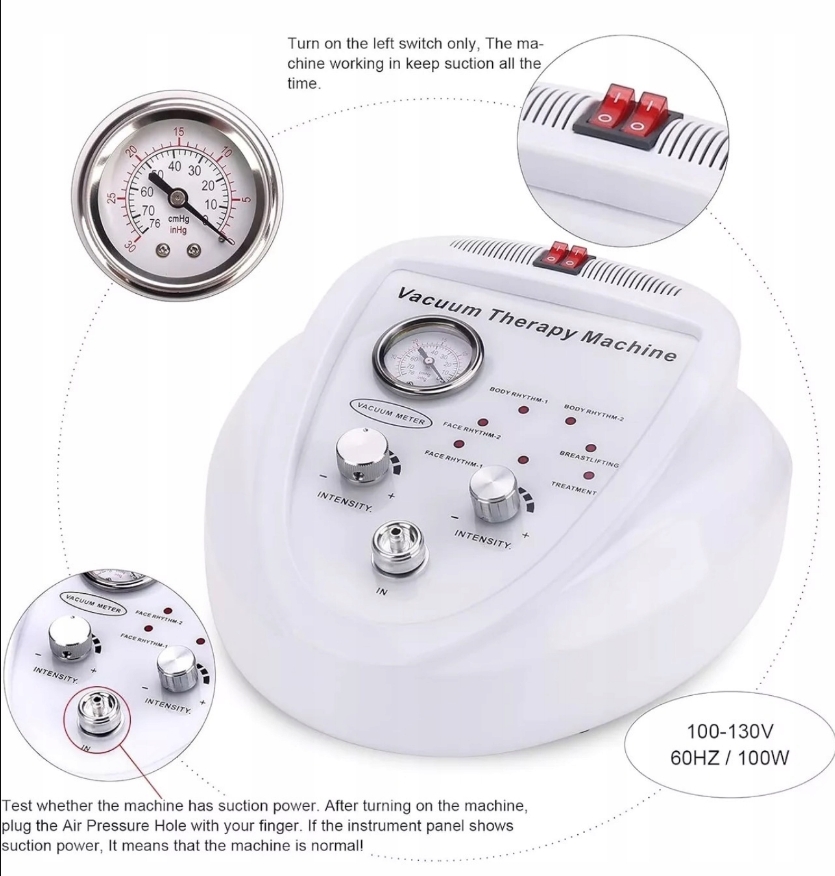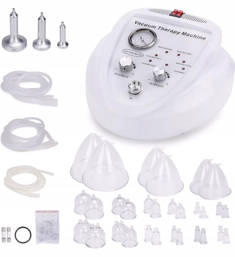 Вакуумний насос стимулює залози і стимулює ріст тканин. Завдяки цьому можна швидко та ефективно покращити зовнішній вигляд та еластичність шкіри. Інші примітні функції пристрою також зменшують кількість жиру в тілі та зменшують целюліт