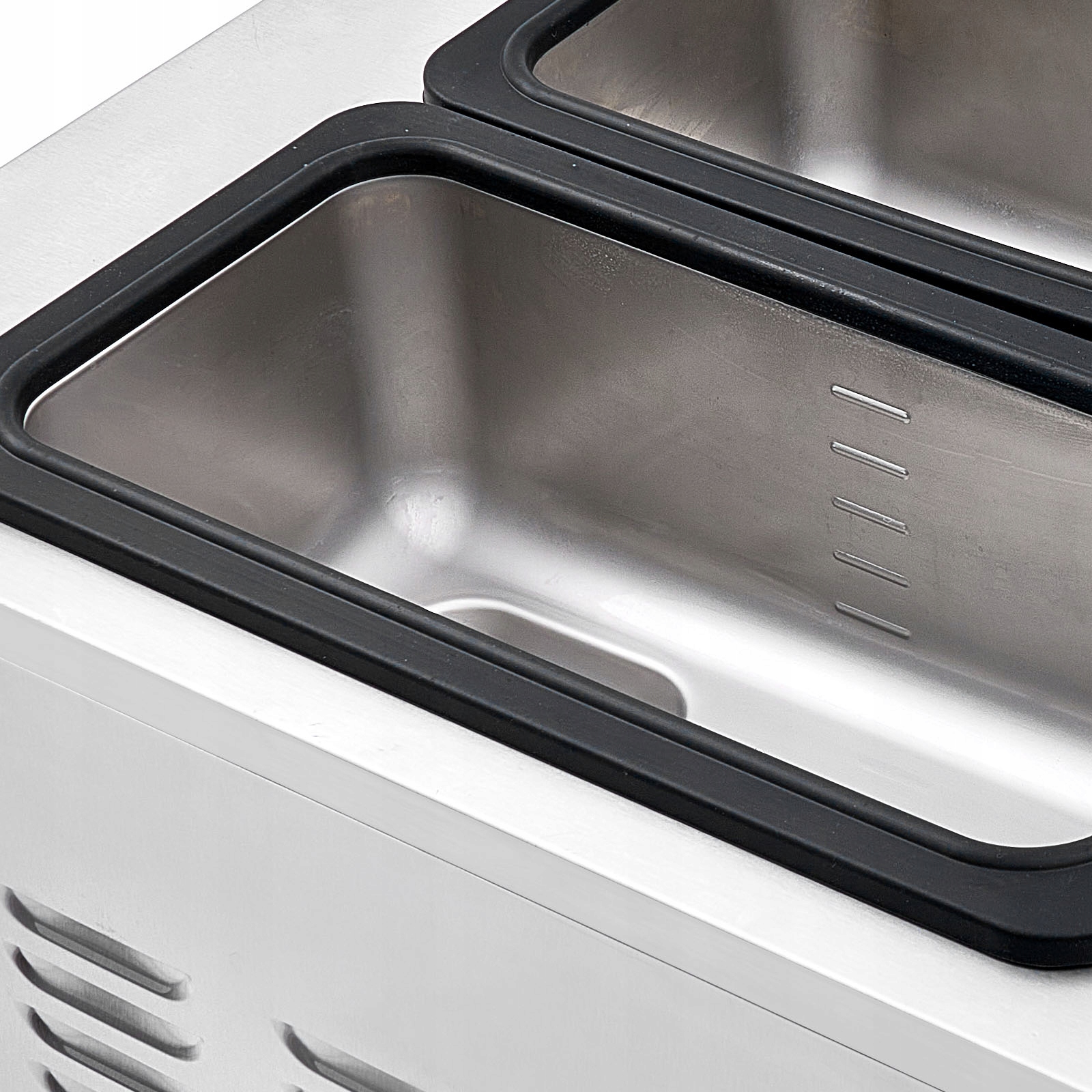 Морозивниця ідеально підходить для різних типів комерційних приміщень, таких як кафе-морозиво, кафе, бургер-бари та невеликі ресторани швидкого харчування. Його компактний розмір і ефективна робота роблять його цінним доповненням до будь-якого ресторану.