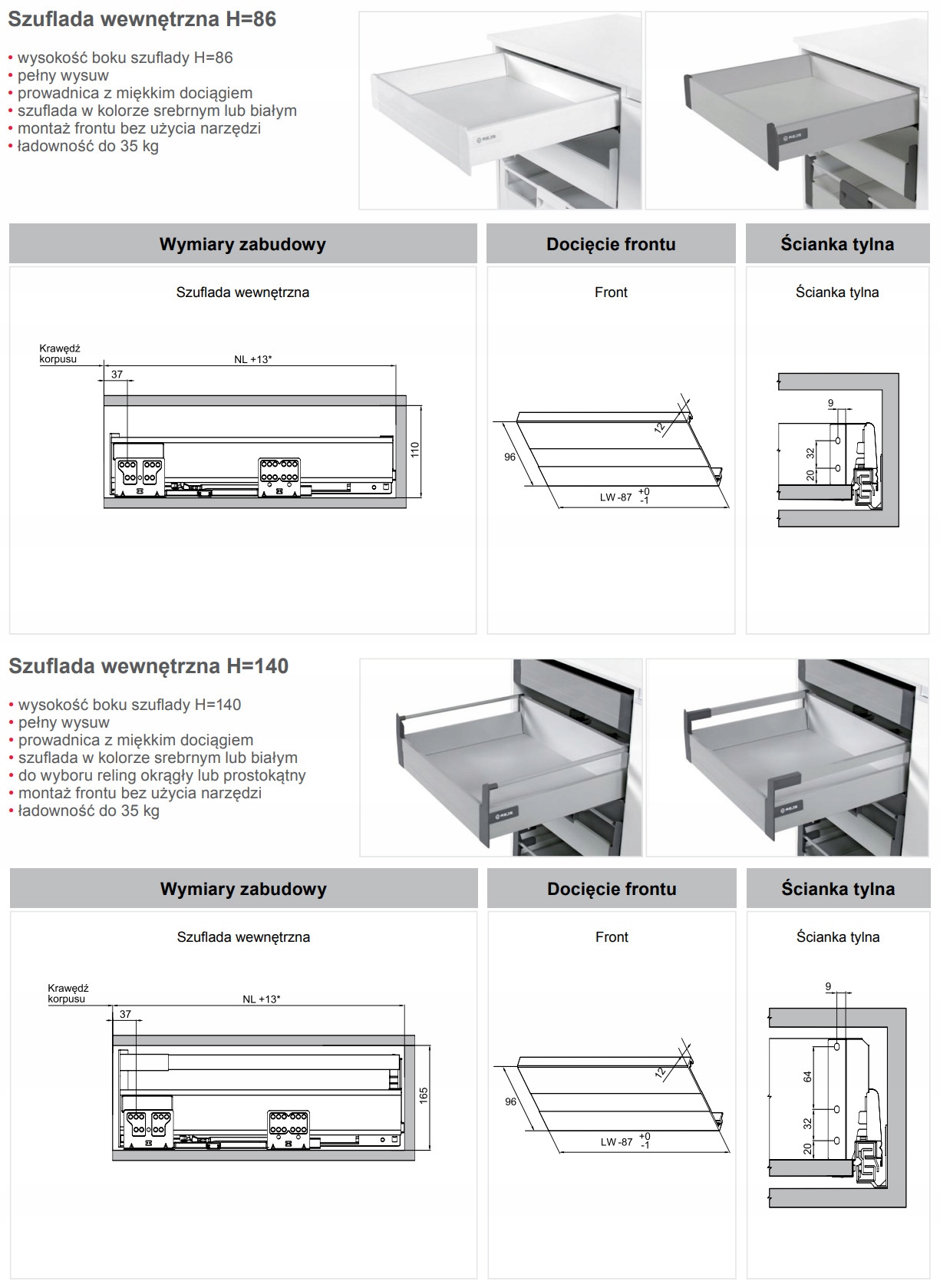 2x висувний ящик