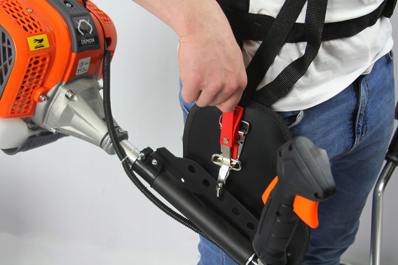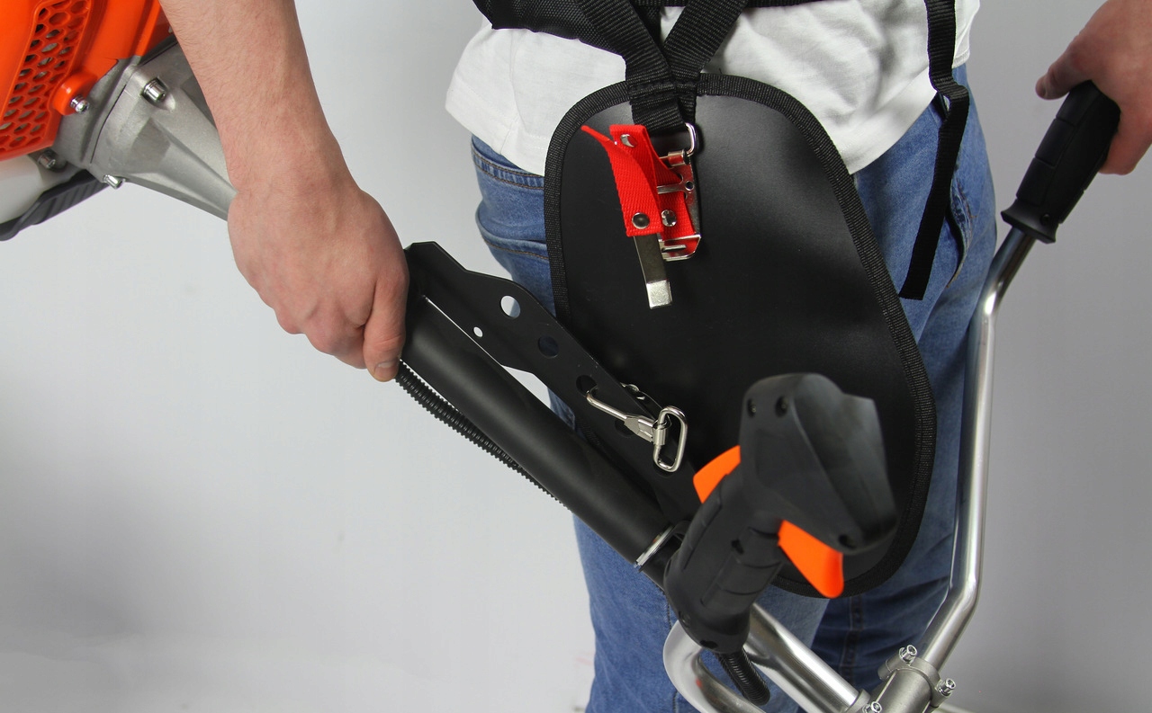 Міцний і зручний ремінь на дві руки зі стабілізацією навколо живота. Вони значно покращують комфорт навіть під час тривалої косіння. Вони забезпечують повну свободу рухів і ЗМЕНШУЮТЬ втому спини.