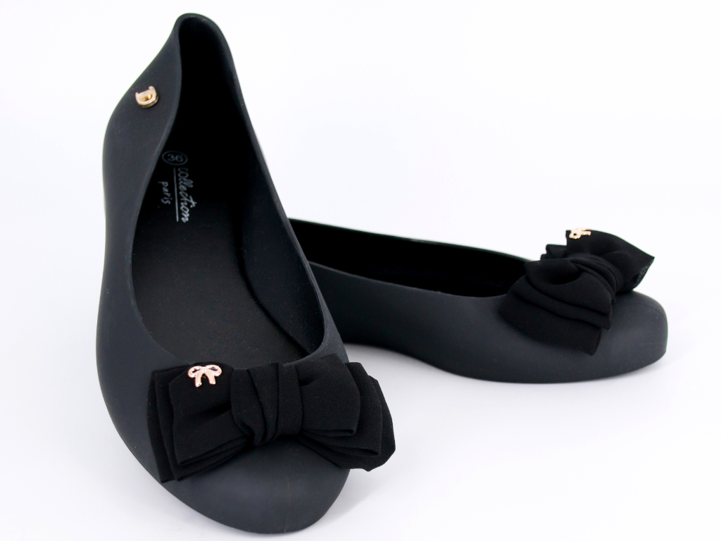ЗРУЧНІ ГУМОВІ ЧОРНІ БАЛЕРИНКИ MELISKI З БАНТИКОМ ЖІНОЧІ ВЗУТТЯ