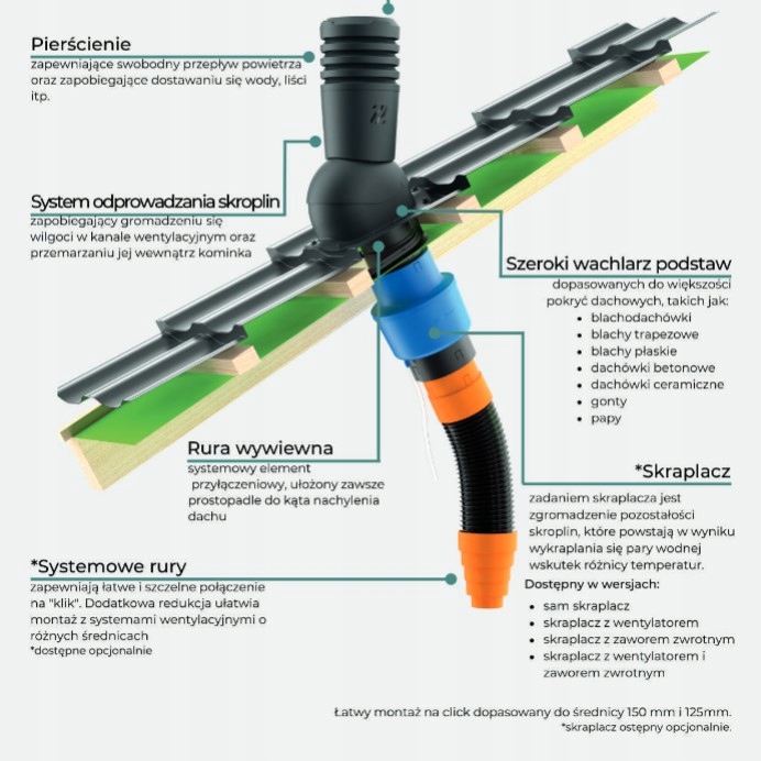 Вентиляційний димохід EcoLine fi 125 виготовляється для більшості покрівельних покриттів, але якщо ви не впевнені щодо свого покриття, надішліть нам фото.