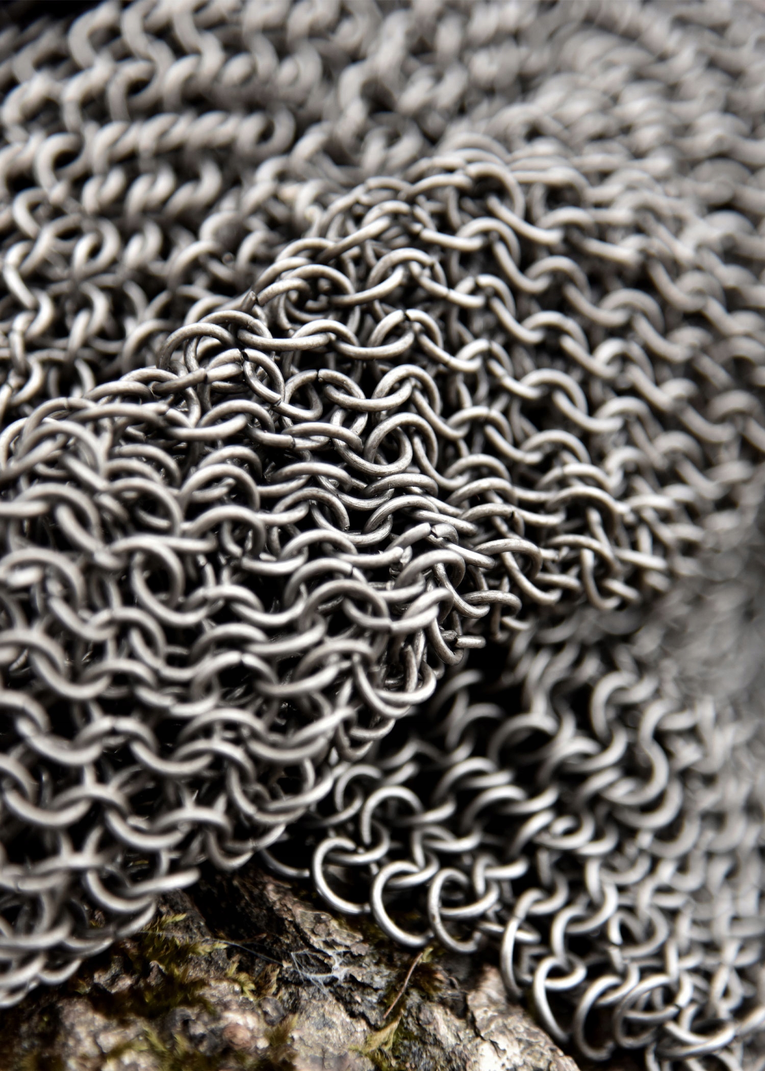 Ця зачіска на ланцюжку має відповідний розмір і повністю закриває шию та плечі. Має квадратний отвір для обличчя. Подібні кольчужні сорочки використовували аж до пізнього Середньовіччя.
