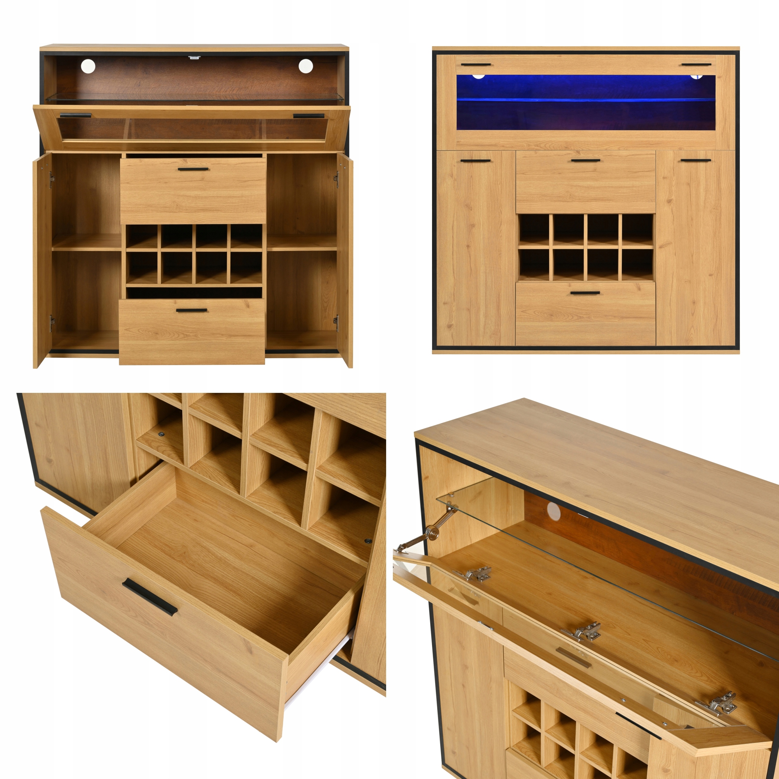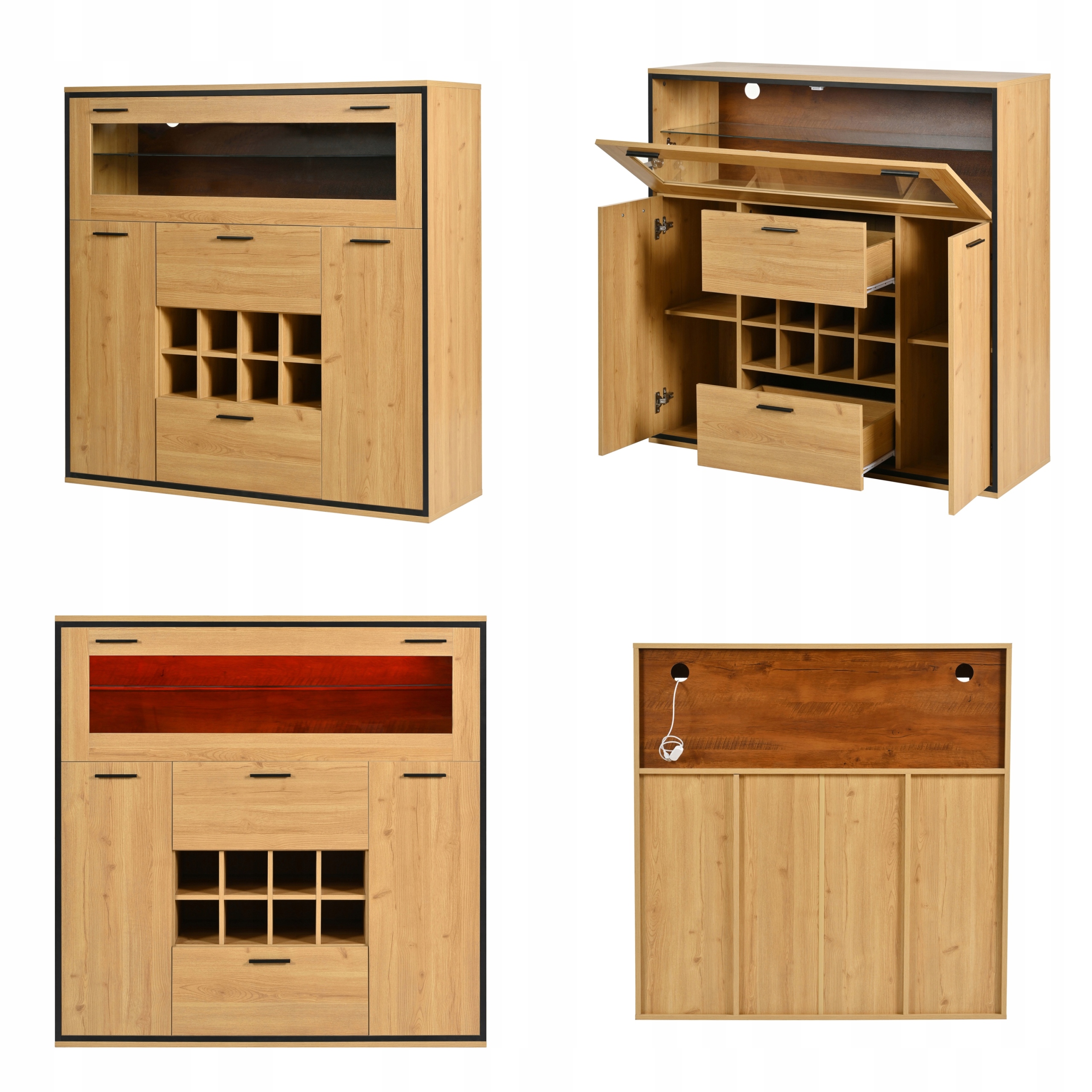 Комод, елегантна винна шафа з подвійними дверцятами, скляною полицею та тримачем для вина – ідеальний простір для зберігання в стильному комоді
