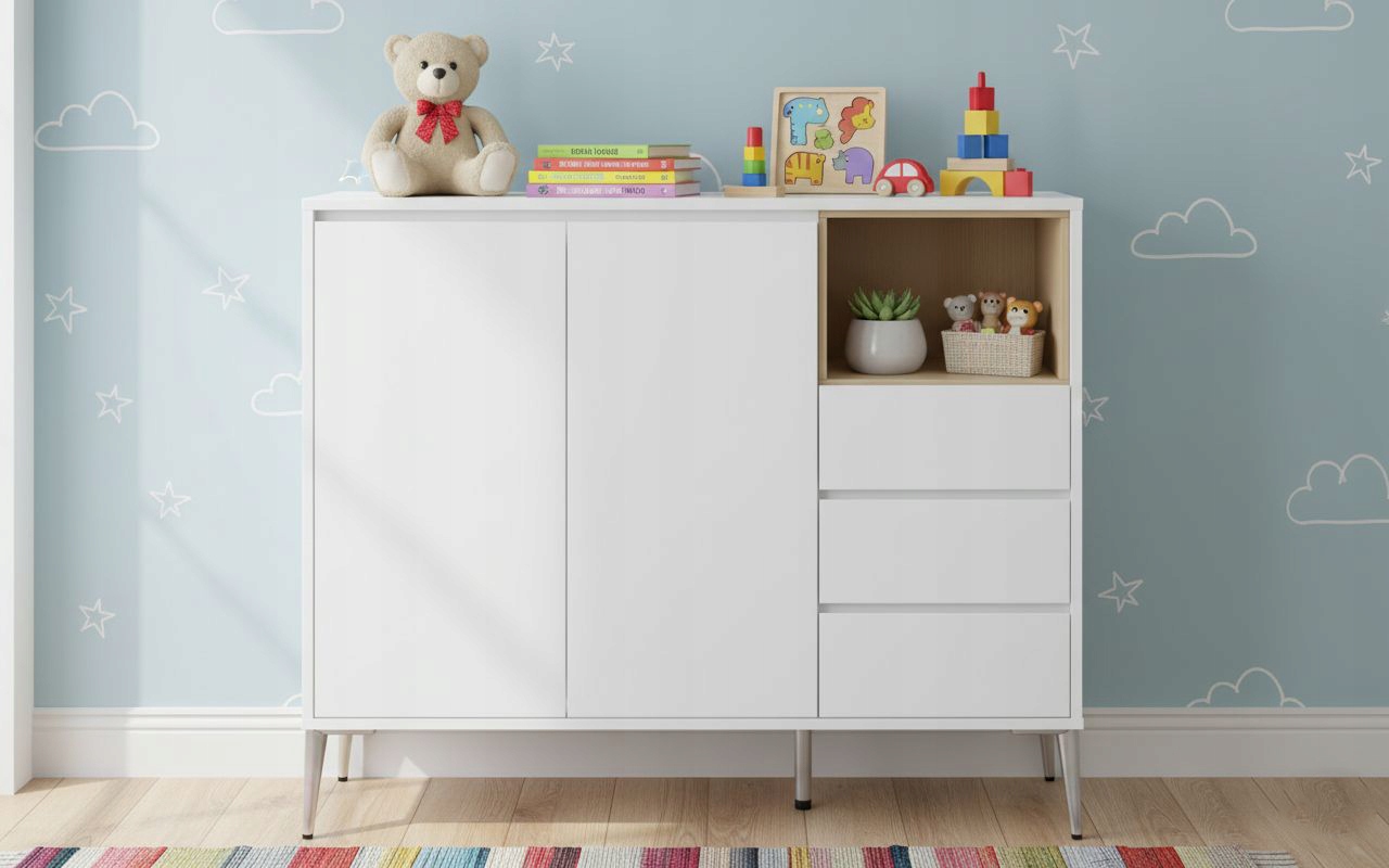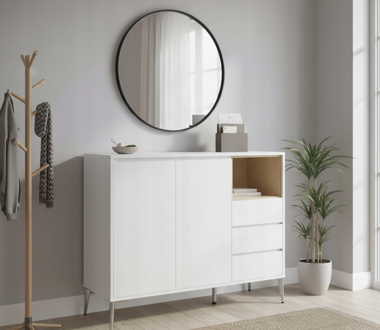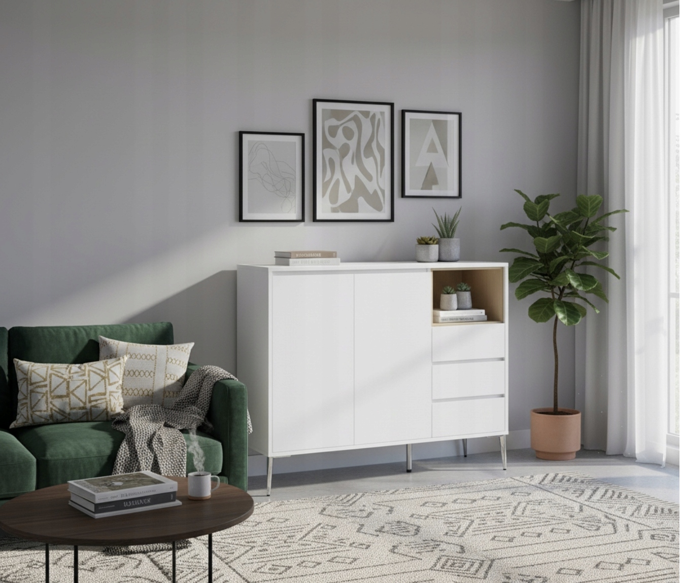 Комод SONGMICS VASAGLE - це функціональний і сучасний предмет меблів, який поєднує в собі стильний дизайн і практичний підхід до зберігання. Завдяки містким висувним ящикам, полицям і великій поверхні стільниці він ідеально підходить для вітальні, їдальні, коридору або домашнього офісу. Яскравий каламутний білий колір і мінімалістичні лінії надають інтер'єру елегантний і впорядкований вигляд. Це ідеальний вибір для тих, хто цінує як естетику, так і практичність.