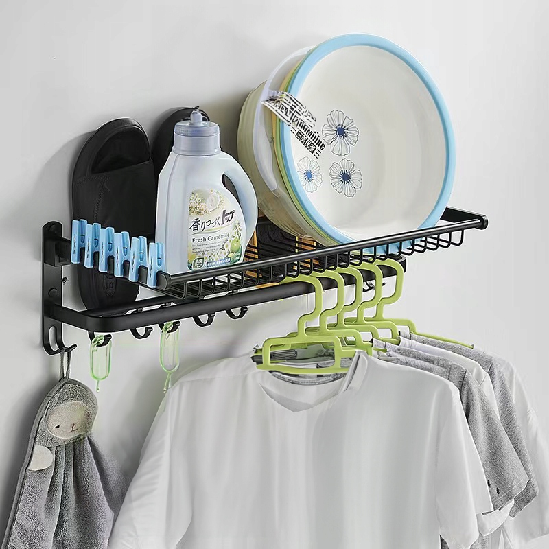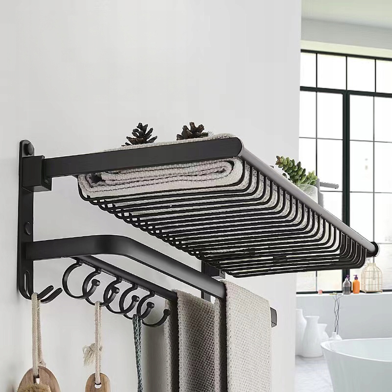 ❤️Наш продукт - ідеальне рішення для тих, хто хоче поєднати стиль, функціональність і економію місця в одному. Представляємо чорну сушарку для ванної кімнати з вішалками, полицею для рушників і косметики - практичний інструмент, який підвищує комфорт використання простору ванної кімнати.❤️