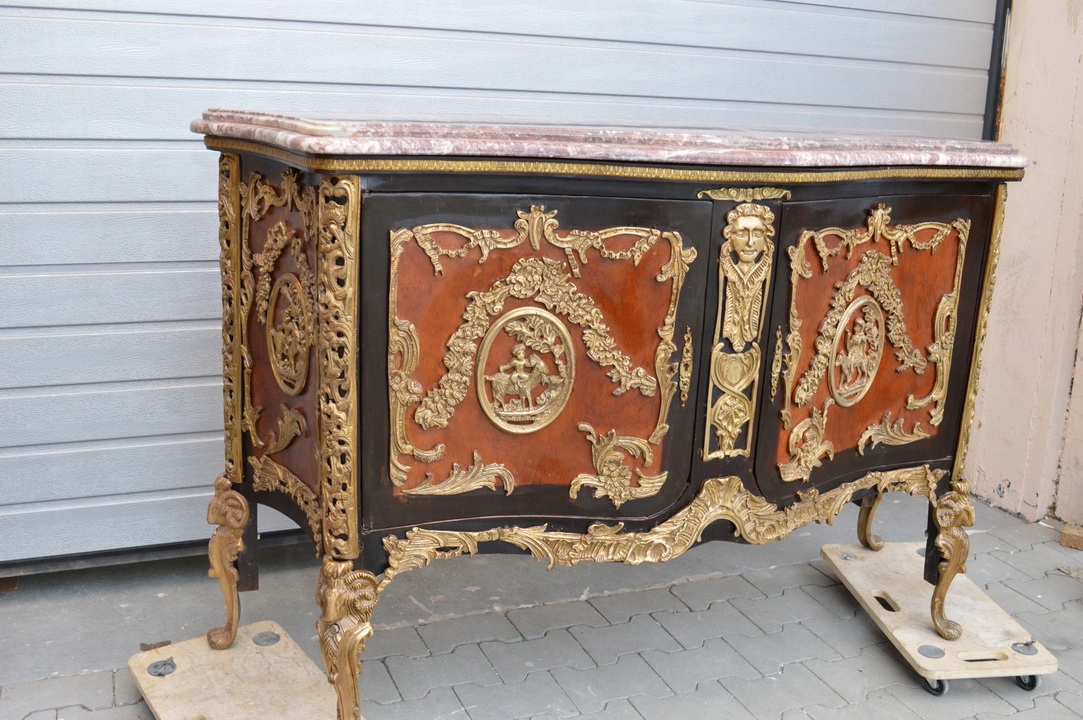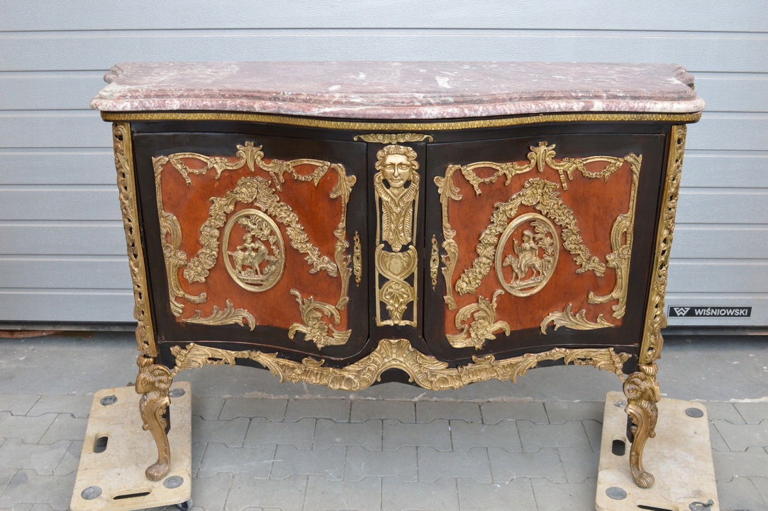 Предметом сьогоднішнього аукціону є неймовірно красивий комод в стилі ампір, численно прикрашений бронзовою фурнітурою, яка додає чудового шарму предмету меблів.