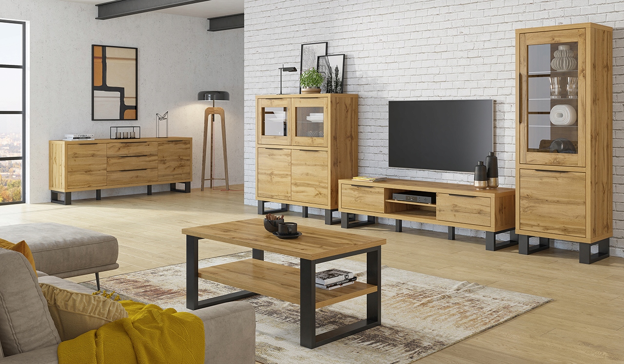 Цей комод із колекції HALLE є ідеальним вибором для будь-якого сучасного та промислового приміщення. Металеві ручки, інтегровані в край передньої частини, і металеві ніжки ідеально поєднуються з натуральним кольором дерева, зберігаючи його природну текстуру, що дозволяє створити надзвичайно стильний інтер'єр.