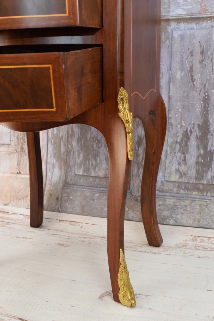 Предмет являє собою неймовірно красивий комод з безліччю декорованої латунної фурнітури, яка додає меблям неабиякий шарм.