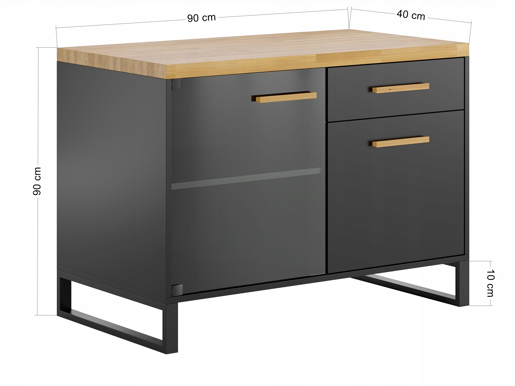 - Верхня стільниця: промаслений дуб, товщина 38 мм