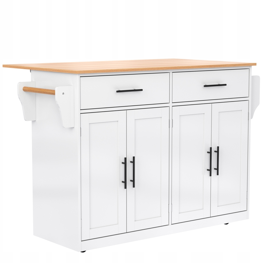 сервісний візок зі складеним верхом, 120 x 46 (70) x 91 см, білим, з колесами та взаємозамінними дерев’яними ногами, що ідеально підходить для кухонної та їдальні