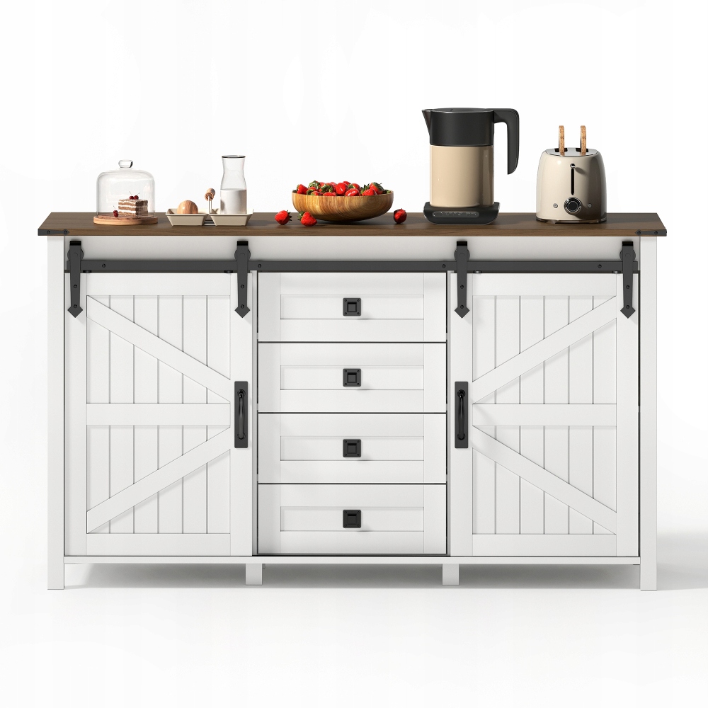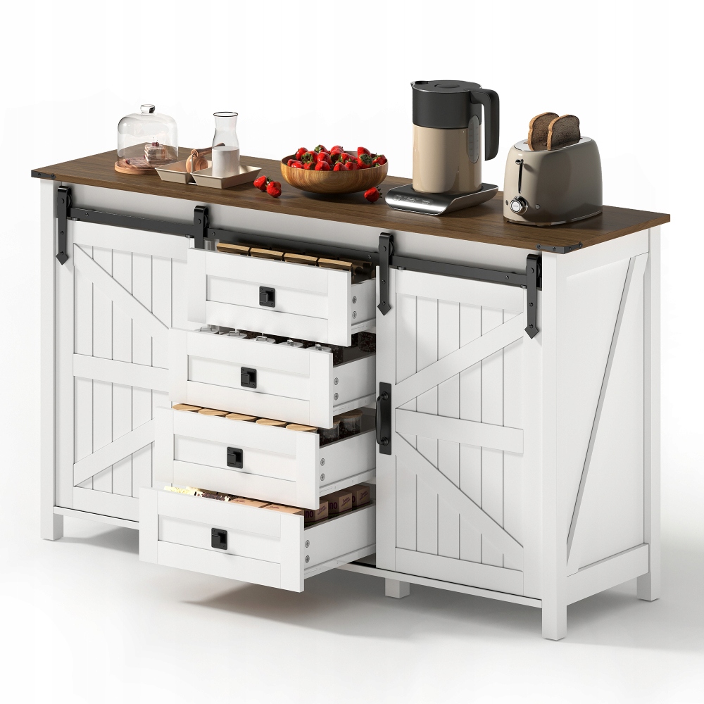 ✅ Розсувні дверцята та 4 ящики: Стільниця шириною 137 см ідеально підходить для таких пристроїв, як кавоварка та мікрохвильова піч. Розсувні дверцята та шухляди забезпечують багато прихованого зберігання кухонного посуду, наприклад столових приборів, тарілок і чашок.